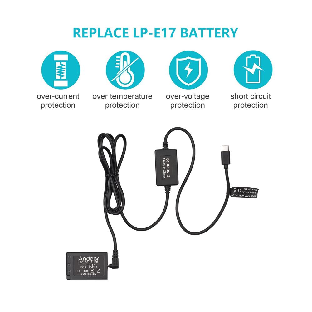 Das PD USB Type-C Kabel zu DR-E17 Dummy-Akku DC-Koppler LP-E17 ist ein unverzichtbares Zubehör für Besitzer von Canon EOS M3 M5 M6 spiegellosen Digitalkameras. Dieses hochwertige Ersatzset bietet eine zuverlässige Stromversorgung für Ihre Kamera, damit Sie sich auf das Fotografieren konzentrieren können. Mit diesem Akku-Kit können Sie sich auf langanhaltende Leistung verlassen, egal ob Sie unterwegs sind oder im Studio arbeiten. Verabschieden Sie sich von lästigen Unterbrechungen und halten Sie die Action fest, ohne sich Gedanken über den Batteriestand machen zu müssen.