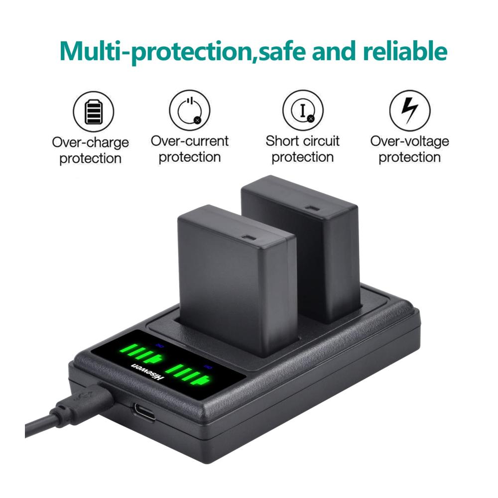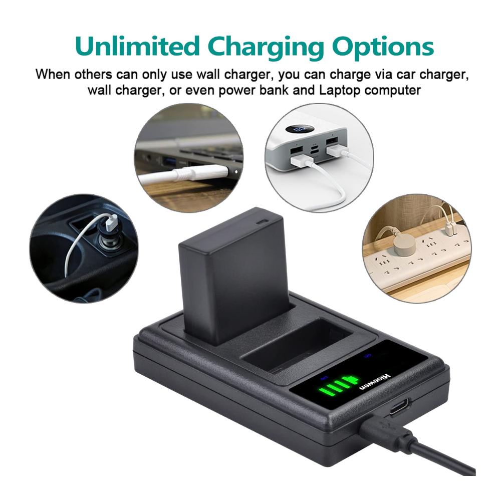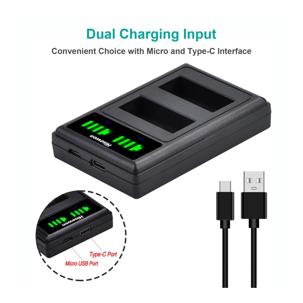 【Dual Ladegerät】Kann zwei Batterien gleichzeitig und unabhängig voneinander aufladen. Auch nimmt mit Typ-C und Micro-USB-Ladeanschluss, können Sie es über Wand-Ladegerät, Powerbank, Laptop, Auto-Ladegerät aufladen.