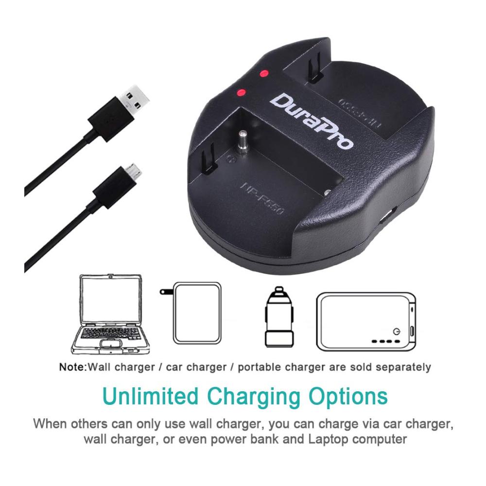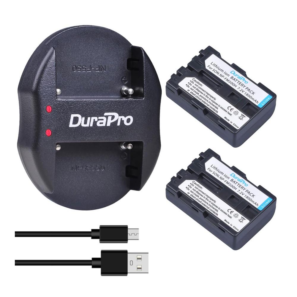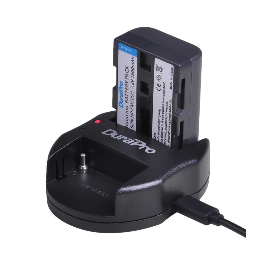 Erhalten Sie zusätzliche Energie für Ihre Kamera mit dem DuraPro NP-FM500H Li-Ionen-Akku und USB-Ladegerät. Dieses Set enthält 2 Akkus und ein duales USB-Ladegerät, ideal für unterwegs.