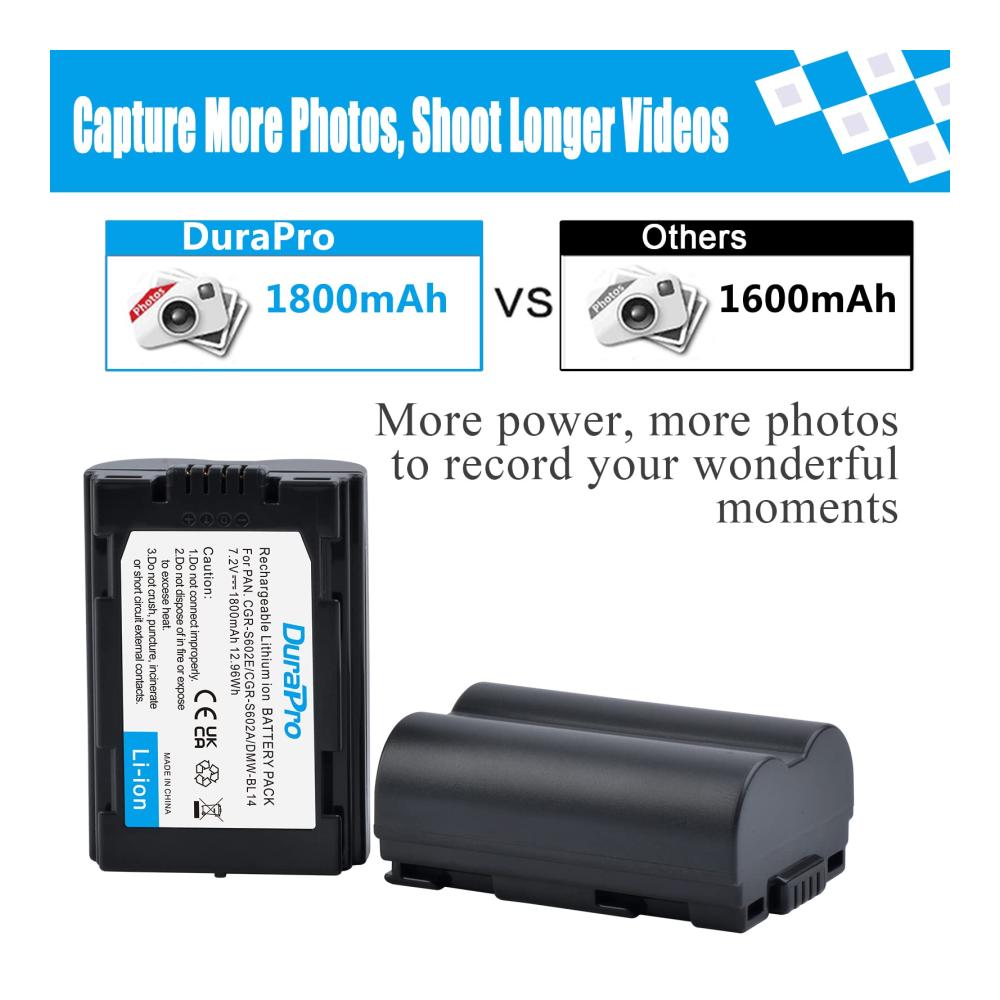 Fully Compatible with: Panasonic CGR-S602, CGR-S602A, CGR-S602A/1B, CGR-S602E/1B, CGR-S602SE, CGR-S603, CGR-S603A/1B, DMW-BL14;