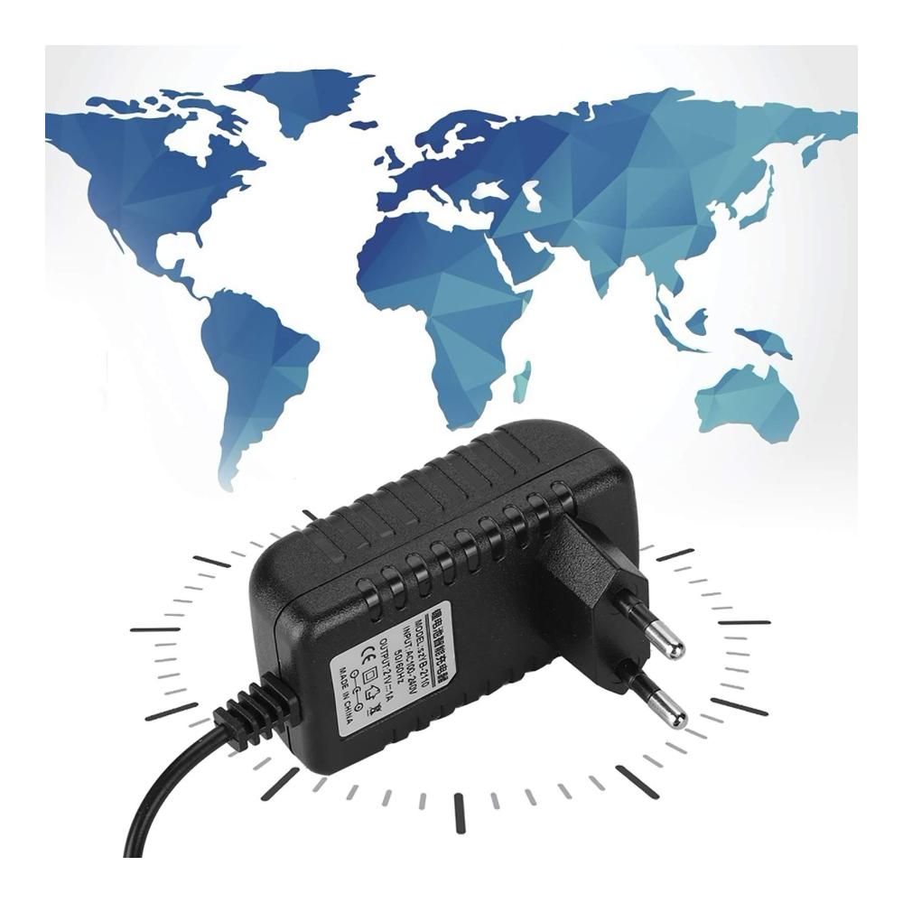 Es ist kompatibel mit einer breiten Spannung von 100–240 V und kommt mit einem 5,5 x 2,5 mm Anschluss sowie US- und EU-Steckern zur Auswahl.
