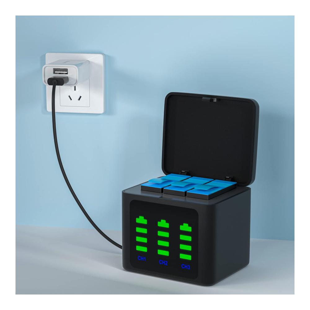 Quick Storage Charger USB 3-Kanäle mit Typ-C-Anschluss für GoPro Hero 10/11 und Hero 9 Black Kamera-Akkus.