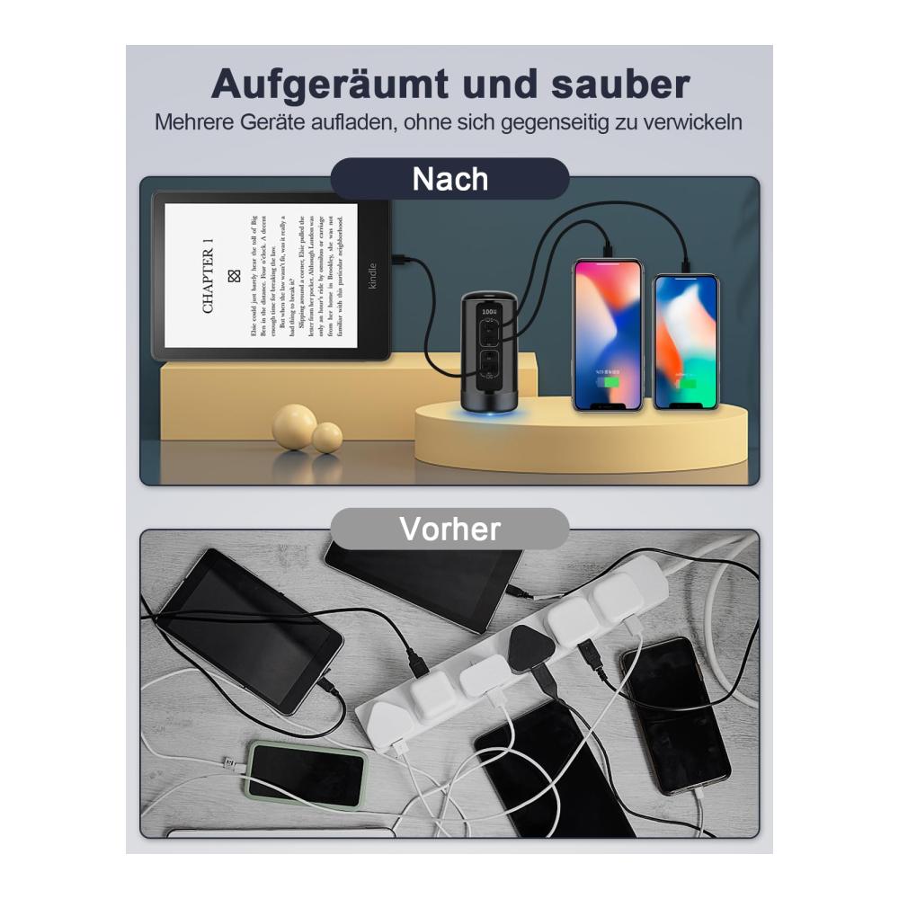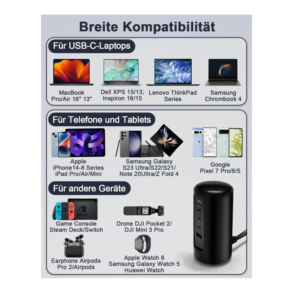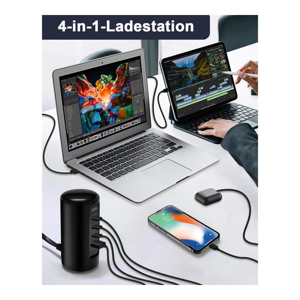 Laden Sie Ihre Geräte schnell auf: Mit drei USB-C-Anschlüssen und einem USB-A-Anschluss bietet diese Turm-Ladestation eine Gesamtausgangsleistung von bis zu 100 W und gewährleistet blitzschnelles Aufladen für Ihr MacBook Air/Pro, Dell XPS, HP, ThinkPad, Chromebook, iPhone 11/12/13/14, Samsung Galaxy, Fold, Google Pixel, iPad und mehr.
