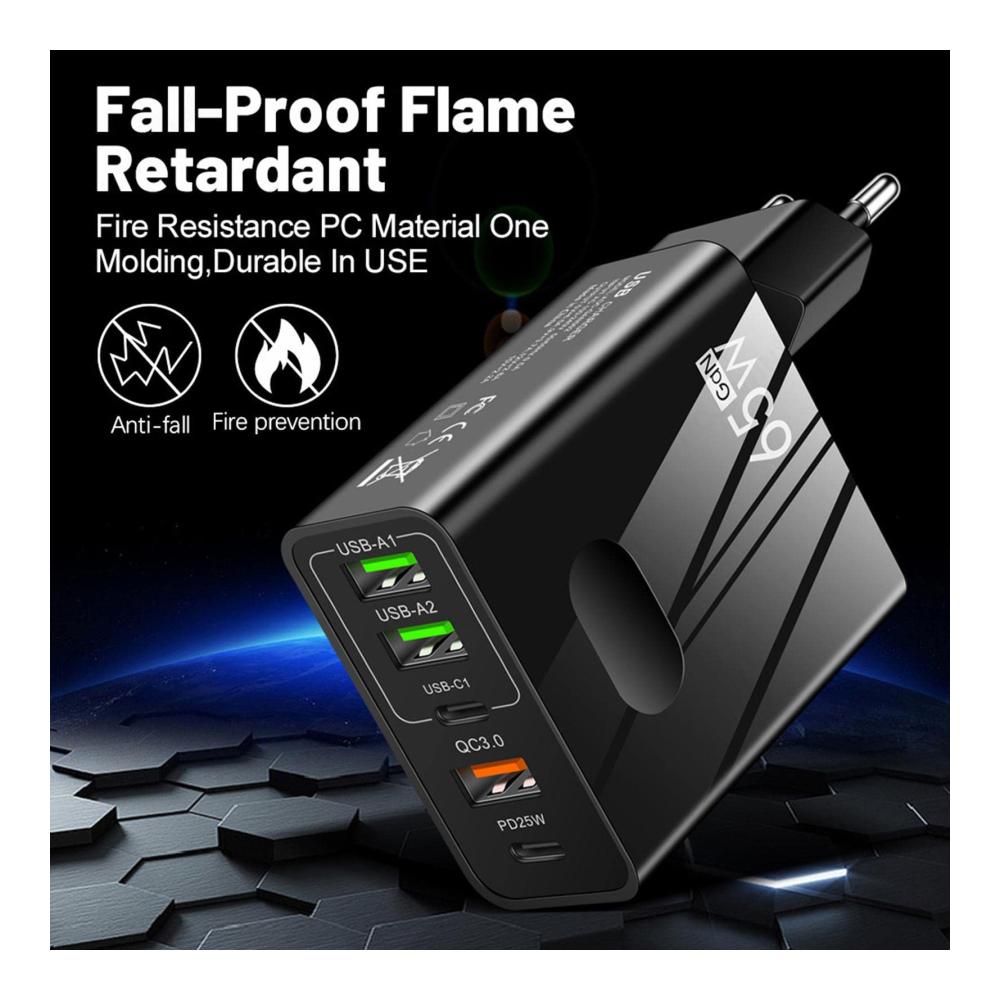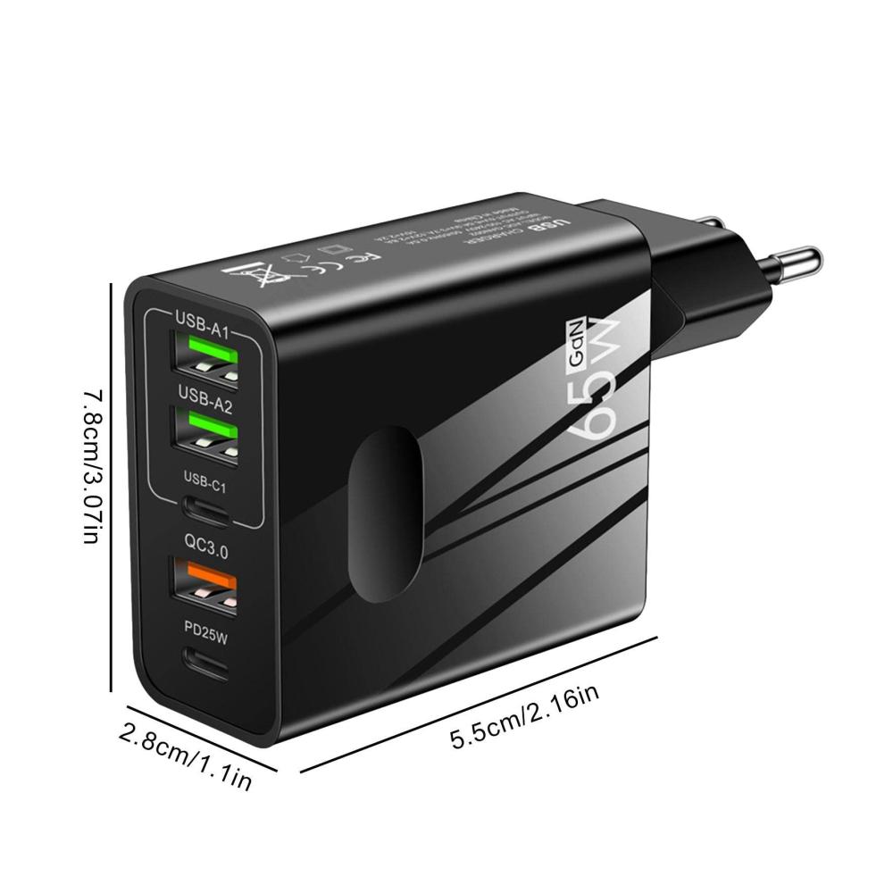 ⇝Halten Sie das Laden sicherer: Das 65-W-PD-Schnellladegerät für Mobiltelefone nutzt die CaN-Nitrid-Technologie, die die Effizienz der elektrischen Energieumwandlung erhöhen, die Adaptererwärmung verringern und das Laden beschleunigen und sichern kann. ⇝Entwickelt mit Smart Chip: Das Ladegerät für Mobiltelefone verfügt über einen Smart Chip, der den Ausgangsstrom und die Ausgangsspannung je nach Gerät automatisch anpassen kann, um Probleme wie Kurzschlüsse zu vermeiden und Ihre Geräte vor Schäden zu schützen. ⇝Lange Lebensdauer: Die Handyhülle für das Telefonladegerät besteht aus einem feuerbeständigen Material, das Flammen und Funken effektiv löschen kann und Sie und Ihre Ausrüstung schützt. ⇝Praktisch und tragbar: Das Telefonladegerät ist unglaublich klein und leicht und wiegt nur 95 Gramm. Ohne befürchten zu müssen, dass es zu viel Platz einnimmt, ist es einfach zu lagern und zu transportieren. ⇝Weit verbreitet: Dieses Ladegerät verfügt über zwei PD-Anschlüsse vo Typ C und drei USB-Anschlüsse, sodass mehrere Geräte gleichzeitig aufgeladen werden können. Es ist hochkompatibel mit den meisten Smartphones und anderen digitalen Geräten. Laden Sie Ihre Geräte mit Sicherheit und Geschwindigkeit auf mit unserem USB-C Ladegerät Wandladegerät. Ausgestattet mit der fortschrittlichen CaN-Nitrid-Technologie für effizientes Laden und einem intelligenten Chip, der den Strom automatisch anpasst, um Schäden zu vermeiden. Die feuerbeständige Hülle gewährleistet eine lange Lebensdauer, während das kompakte Design für einfache Aufbewahrung und Transport sorgt. Mit zwei PD-Typ-C-Anschlüssen und drei USB-Anschlüssen für vielseitige Kompatibilität ist dieses Ladegerät ein unverzichtbares Zubehör für alle Ihre elektronischen Geräte.