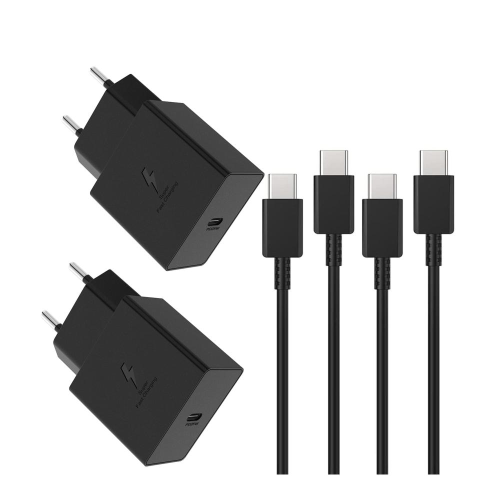 Das DBZYLN 25W Ladegerät für Samsung Galaxy S24 S23 S22 Ultra S22 S21 S21 S20 FE Note10 Note20 A54 A53 A90 A80 A70 A71 Z Fold 5 4 3 Flip 5 4 3 USB C Schnellladegerät mit Ladekabel (2 Pack-Schwarz) ist ein unverzichtbares Zubehör für Ihre Samsung-Geräte. Mit einer Ausgangsleistung von bis zu 25 W und einem abnehmbaren Typ-C zu Typ-C Kabel ermöglicht es schnelles und flexibles Laden. Dank seiner Weitspannungseingang von 100-240V ist es ideal für Büro, Spiel, Alltag und Reisen. Im Lieferumfang enthalten sind zwei Ladegeräte und zwei Ladekabel, damit Sie stets gut ausgestattet sind.