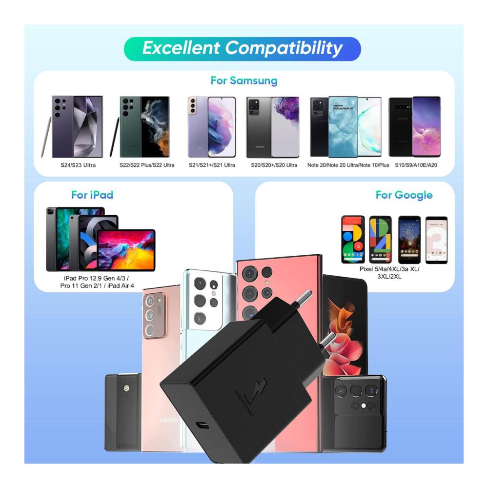 USB C Netzteil, laden Sie das Galaxy S22/ S21 in 30 Minuten von 0 % auf 55 % auf, sparen Sie Zeit.