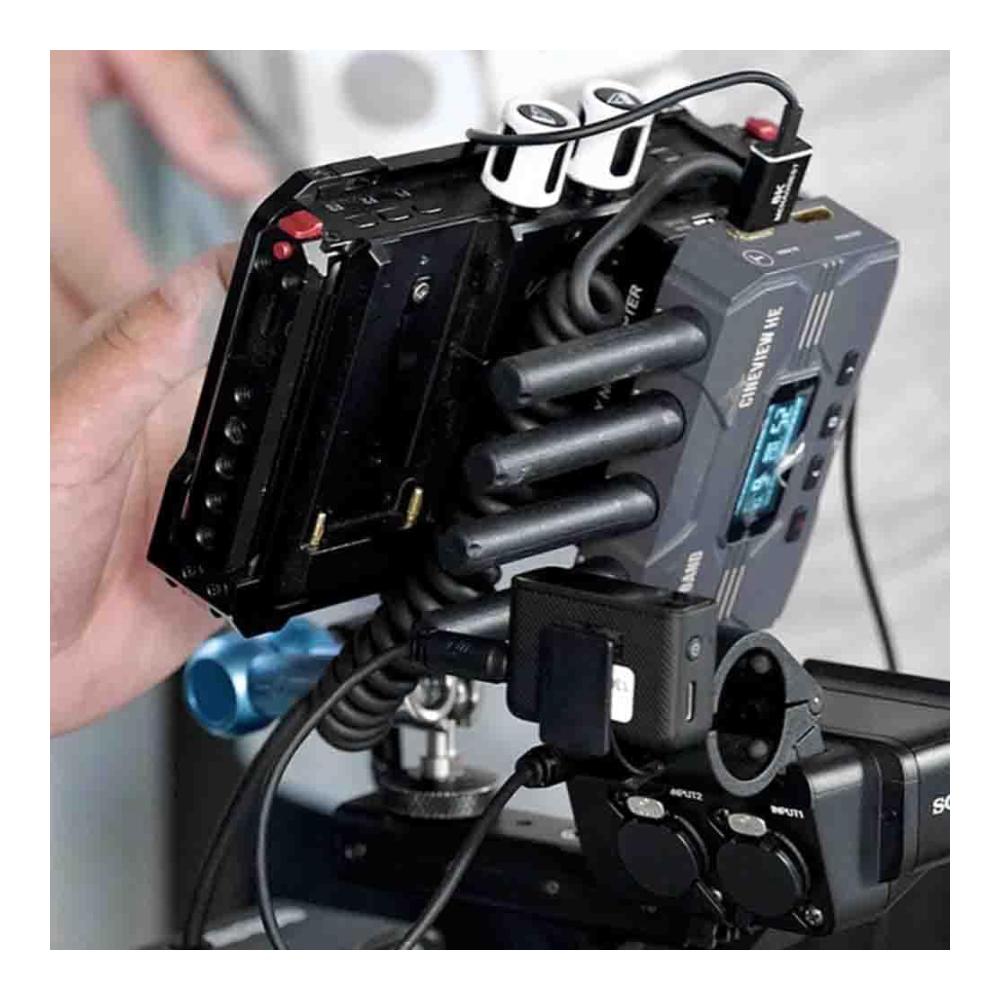 1. Nutzen Sie die NP-F-Schnittstelle, um eine Seite am Monitor und die andere Seite an Geräte wie z. B. drahtlose Bildübertragung zu befestigen.