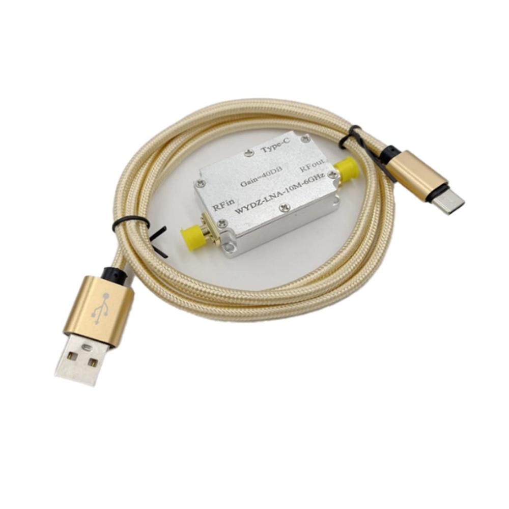 Oikabio 1. Stromversorgung: Typ-C-Kabel. 2. Frequenzbereich des Moduls: 10 m – 6 GHz. 3. Rauschmaß: = 5 dB (siehe gemessene Kurve für verschiedene Frequenzen). 4. Verstärkung: 40 dB (siehe gemessene Kurve für verschiedene Frequenzen). 5. Volumen: 4,5 x 3 x 1,4 cm (ohne hervorstehende SMA-Größe); Nettogewicht: 66 g (einschließlich Host Typ-C-Kabel). 6. Stromstärke: weniger als 80 mA. 7. P1 dB = 10 dBm bis 2 GHz. 8. Ausgangsschnittstelle: SMA-Buchse, Eingangs- und Ausgangsimpedanz: 50 Ohm. Material: Metall. Farbe: wie abgebildet. Was Sie erhalten: 1 x Verstärker. 1 x Typ-C-Kabel. Nur der Inhalt des obigen Pakets, andere Produkte sind nicht im Lieferumfang enthalten. Hinweis: Aufgrund unterschiedlicher Lichtverhältnisse und Bildschirmeinstellungen kann die Farbe auf der Abbildung geringfügig vom tatsächlichen Produkt abweichen. Die Maße können um ± 1-3 cm abweichen.
