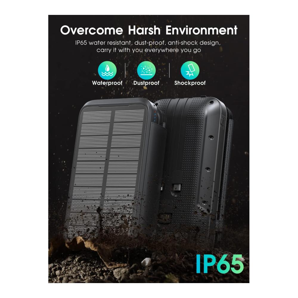 • 1x Solar powerbank, 1x Type-C kabel, 1x Handbuch, 1x Schlüsselband