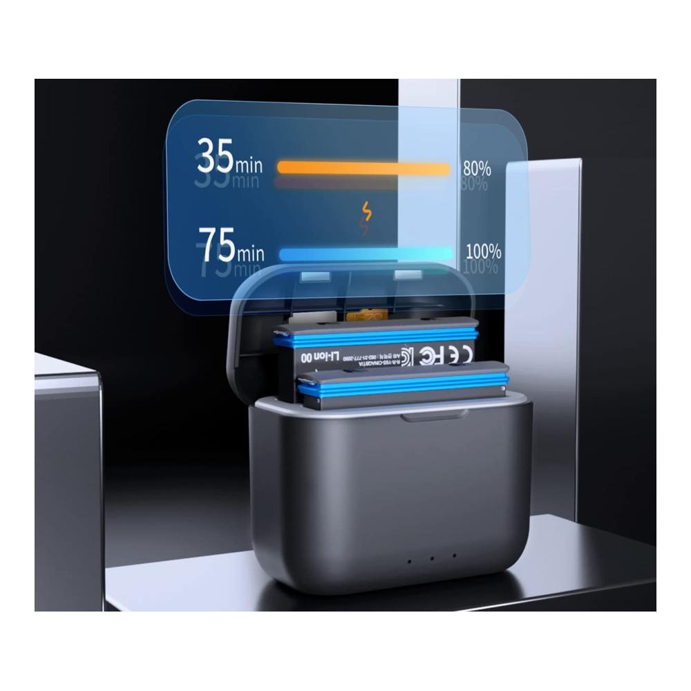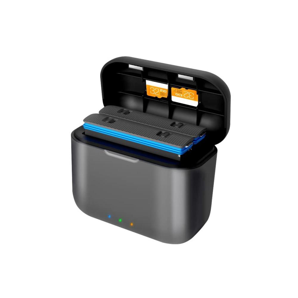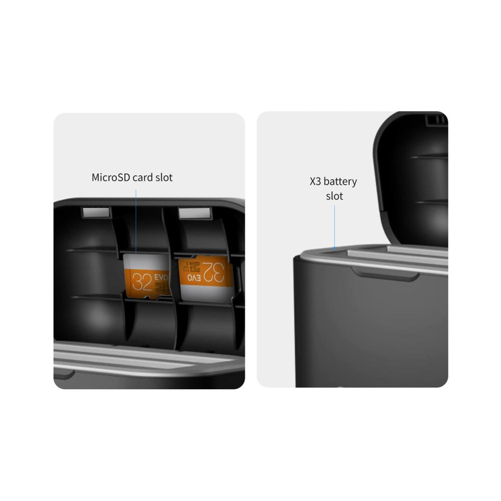Das Tragbare Dual-Kanal-Ladegerät ist ein Schnelllade-Hub für Insta360 X3 Action-Kamera-Akkus in eleganter Schwarzfarbe. Hergestellt aus hochwertigem ABS, wiegt es nur 58 g und misst 72 x 59 x 40 mm. Im Lieferumfang enthalten ist ein Typ-C-Kabel für ultimative Bequemlichkeit.