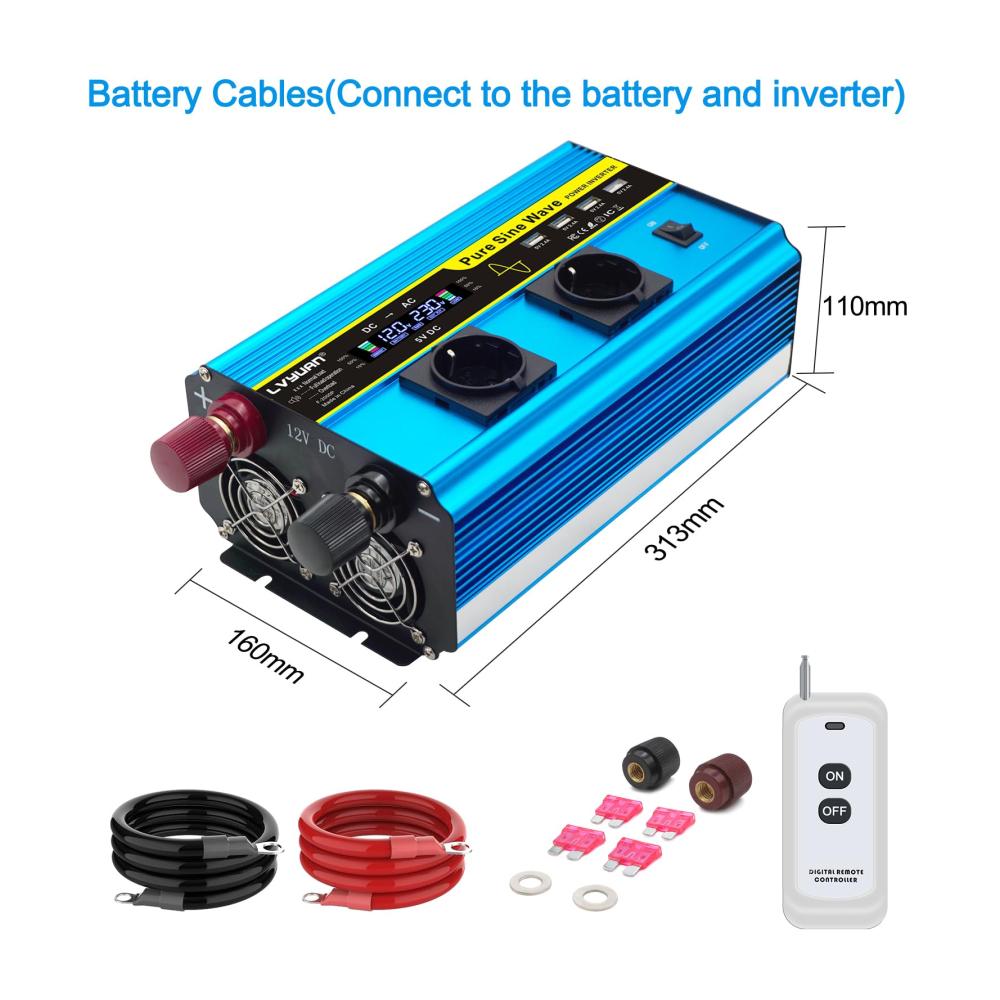 Be the first to review “Hochleistungs-Wechselrichter 12V auf 230V 2000W/4000W reiner Sinus mit LCD-Fernbedienung und drahtloser Steuerung. 2 AC-Steckdosen 4 USB-Ports für zuverlässige Energieumwandlung” Antworten abbrechen