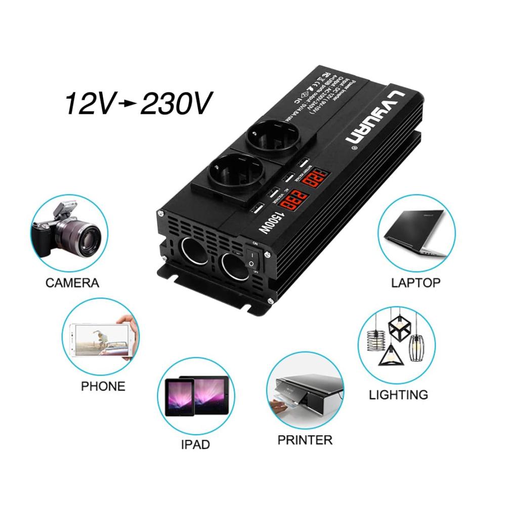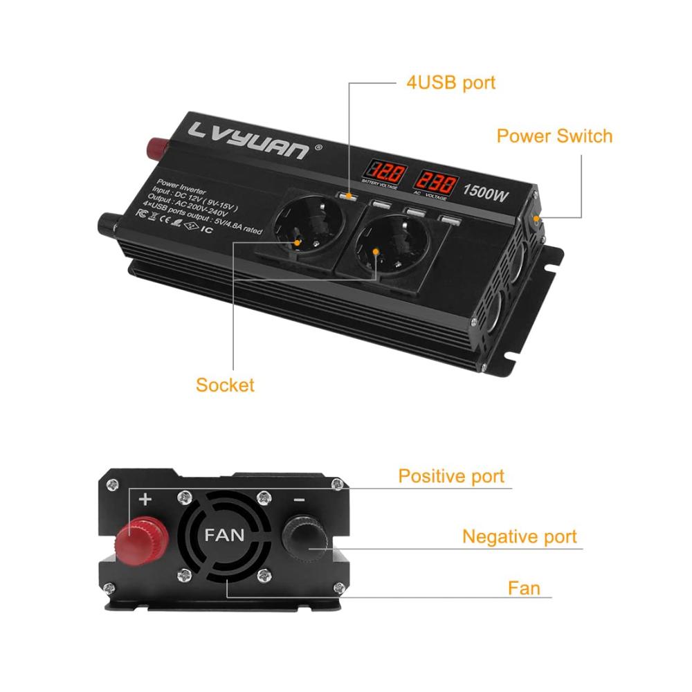 LVYUAN 1500W Wechselrichter DC 12V zu AC 230V/240V Konverter