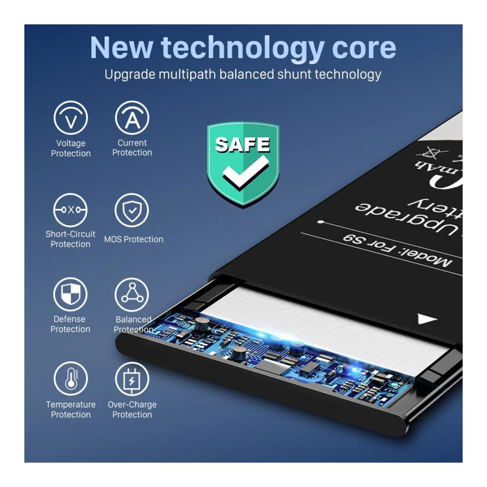 【Ein sicherer und langlebiger Akku】Um einen Ersatzakku für Ihr Samsung Galaxy S9 zu wählen, muss die Sicherheit Ihre erste Anregung sein, die auch unsere absolute Priorität ist. Dieser Akku mit 4200 mAh wird mit den Zertifizierungen CE, FCC, UL, PSE und RoHS geliefert, während er hochwertige Mikrochips verwendet, die Ihr Galaxy S9 effektiv vor Überladung, Überentladung, Überhitzung und Kurzschluss schützen.