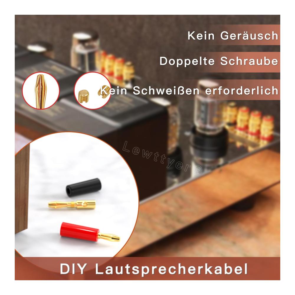 Durch die Verwendung unseres Lewttyer 4mm Banana Plug Adapter Sets können Sie Ihre Lautsprecher mühelos anschließen, ohne zu löten. Diese robusten Bananenbuchsen mit Muttern bieten eine sichere und langlebige Verbindung. Mit einem Durchmesser von 4 mm sind sie vielseitig einsetzbar und können in verschiedenen Geräten verwendet werden. Erleben Sie eine einfache Installation und eine zuverlässige Verbindung für ein verbessertes Audioerlebnis.