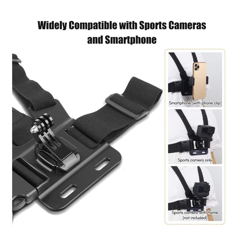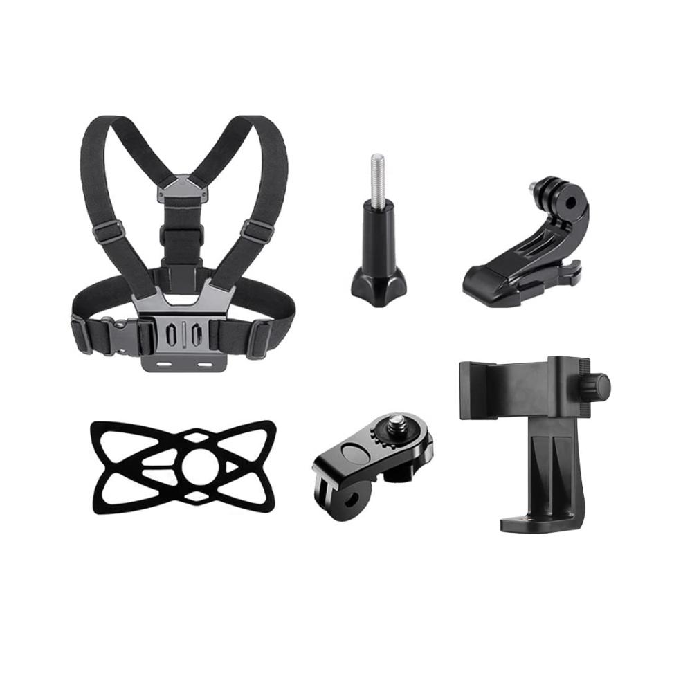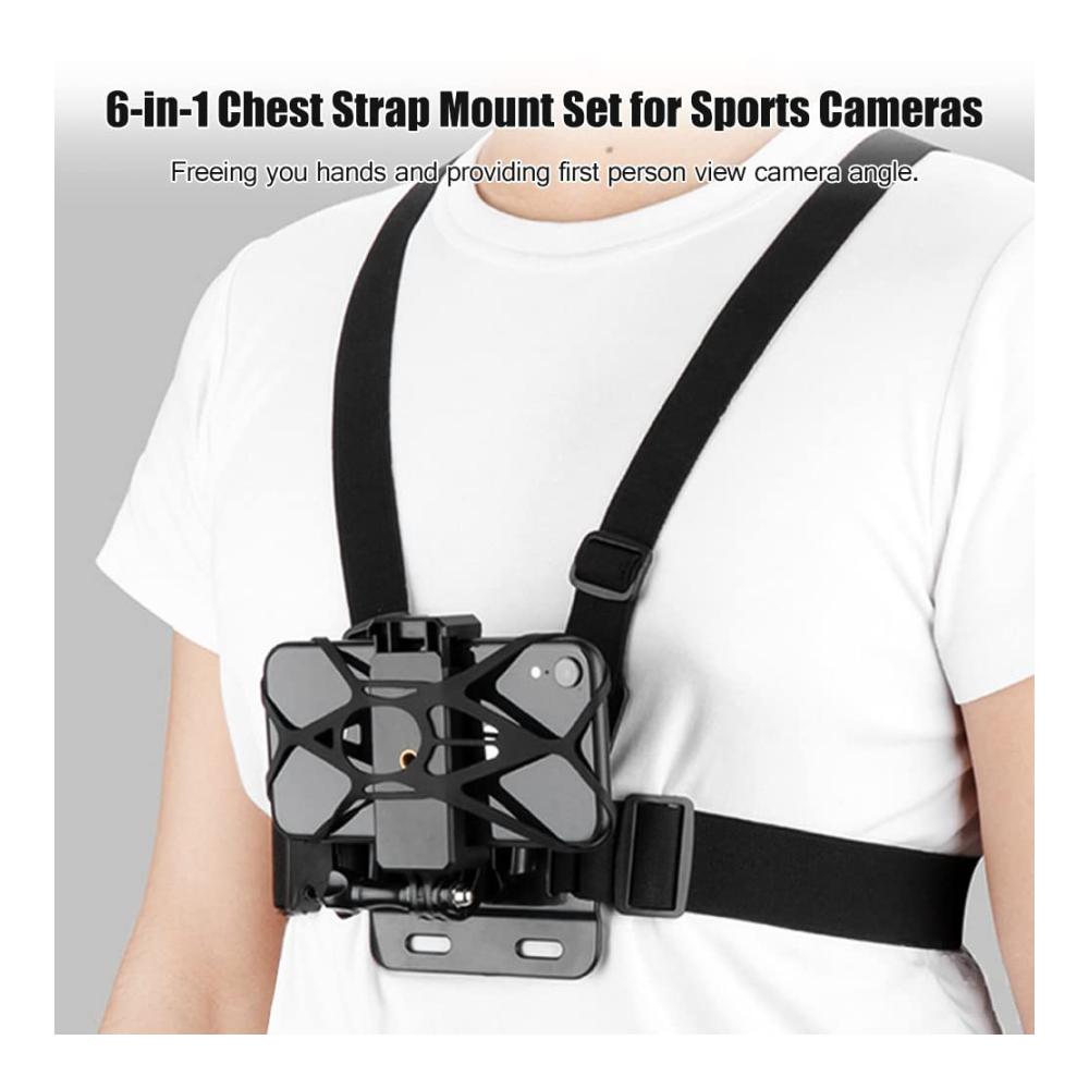 [Multifunktionales 6-in-1-Brustgurt-Set] Enthält 1 * Brustgurt, 1 * J-Haken, 1 * Rändelschraube, 1 * Adapterschraube, 1 * Telefonclip und 1 * Silikonmatte, geeignet für die Montage von Sportkameras und Smartphones .