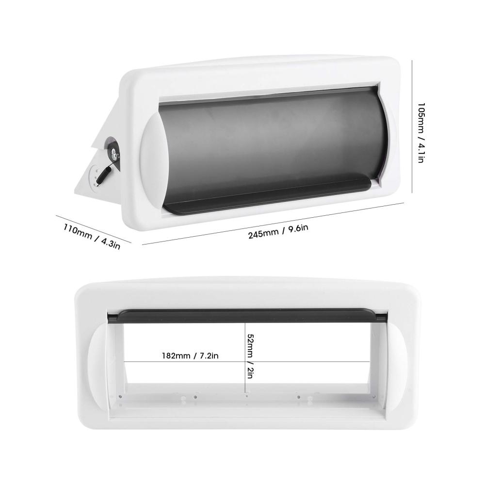 Schützen Sie Ihr Armaturenbrett-Einbau-Videogerät mit dieser wasserdichten Marineboot-Einzel-DIN-DVD-Radio-Schutzabdeckung. Hergestellt aus hochwertigem ABS-Material in Weiß, bietet diese Abdeckung eine perfekte Passform mit den angegebenen Abmessungen. Einfach zu installieren mit den mitgelieferten Schrauben.