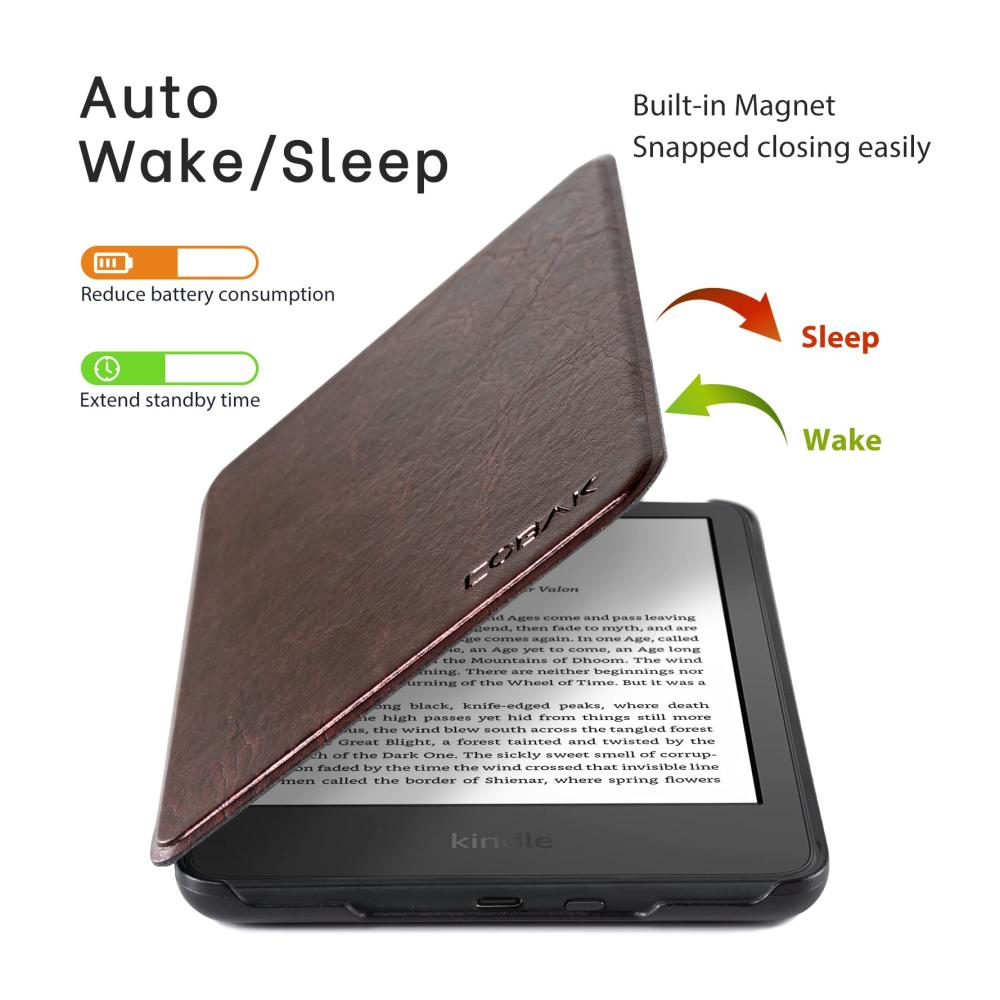 Die CoBak Kindle Hülle bietet stilvollen Schutz für Ihren 6 Kindle 11. Generation 2022 e-Reader. Mit einer speziellen Auto Schlaf/Wach Funktion und einem Smart Cover in der Farbe Goldene Zeit ist sie eine elegante Ergänzung für Ihr Tablet. Hergestellt aus hochwertigem Kunstleder und leichtem Material, bietet sie optimalen Schutz und Komfort für unterwegs.