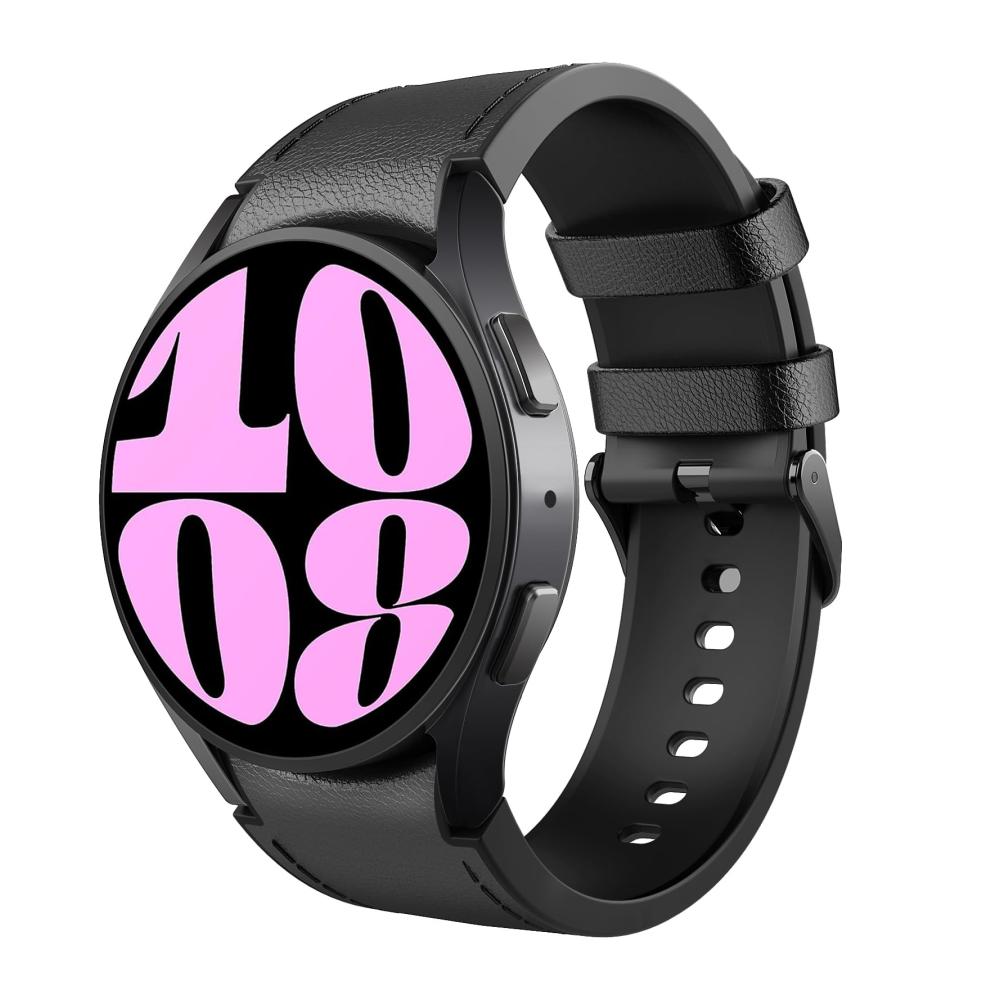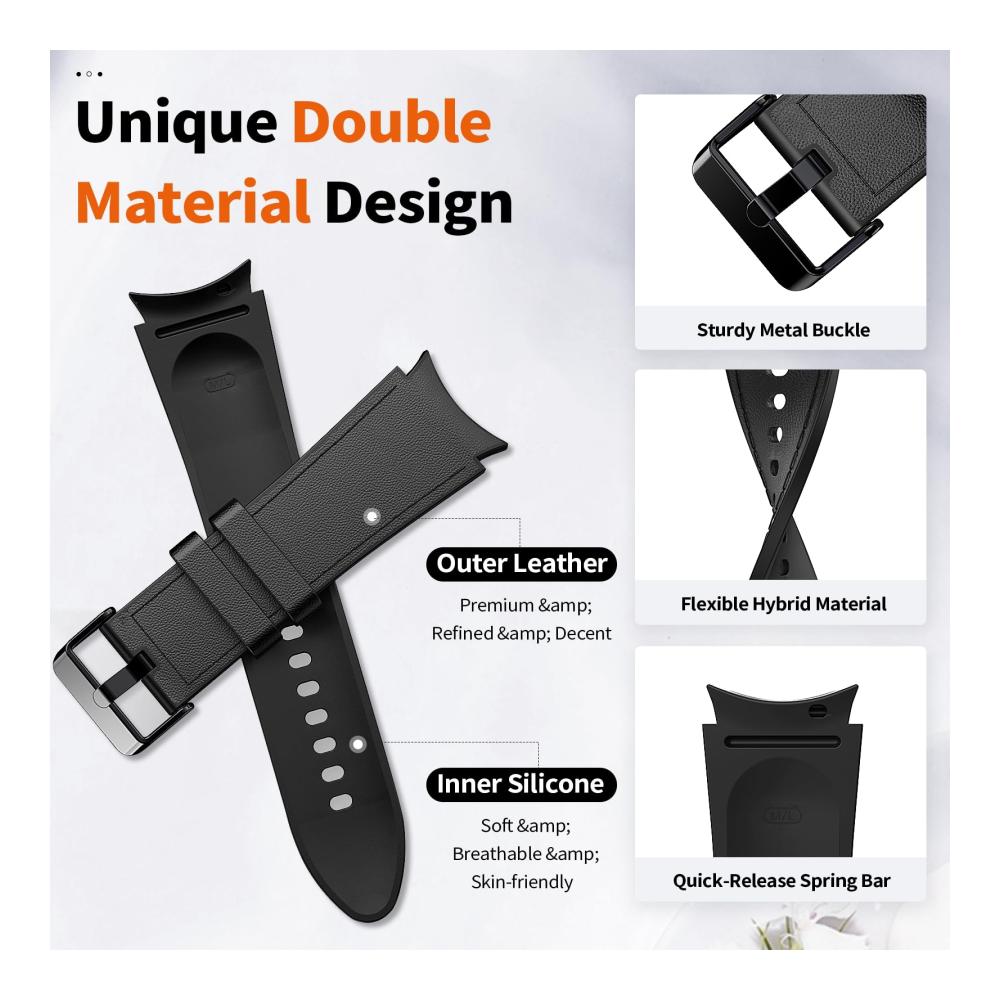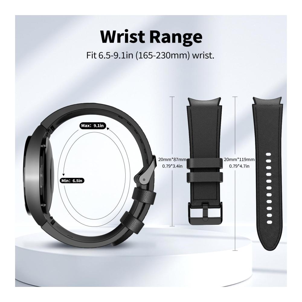 TiMOVO Echtleder-Sportarmbänder aus weichem Silikon für Damen und Herren – Retro-Armbänder mit EdelstahlverschlussKompatible Modelle:Kompatibel mit Galaxy Watch 6 44/40mm, Watch 6 Classic 47/43mm, Galaxy Watch 4/5 40mm/44mm, Galaxy Watch 5 Pro 45mm, Galaxy Watch 4 Classic 42mm/46mm, Galaxy Watch 3 41mm, Galaxy Watch Active 2 40mm/44mm, Galaxy Watch Active 40mm, Galaxy Watch 42mm, Gear Sport, Gear S2 ClassicEinstellbare Größe:6.5″ – 9.1″ (165mm – 231mm)Produktmerkmale:– Leichte und hautfreundliche Silikonbänder, wasserdicht, schweißbeständig, keine Schädigung der menschlichen Haut, keine Allergien, langlebig und angenehm zu tragen.- Einfache Installation, kein Werkzeug erforderlich! Schnell lösbare Federstege an beiden Enden des Riemens, mit denen Sie die Bänder in Sekundenschnelle austauschen können.- Bequem und gut aussehend, Lederoberfläche und Silikonfutter, damit Sie mit Ihrer Smartwatch zu eleganten oder sportlichen Anlässen passen.- Einstellbare Größe, einfach die am besten geeignete Größe für Ihr Handgelenk zu finden und die Länge der Bänder anzupassen.- Vintage-Chic-Look langlebige Schnalle mit Kerbe dient dazu, das Uhrenarmband praktisch oder stilvoll zu machen und sieht trendiger, femininer und dezenter aus und passt sogar zu Ihren Outfits im täglichen Leben.