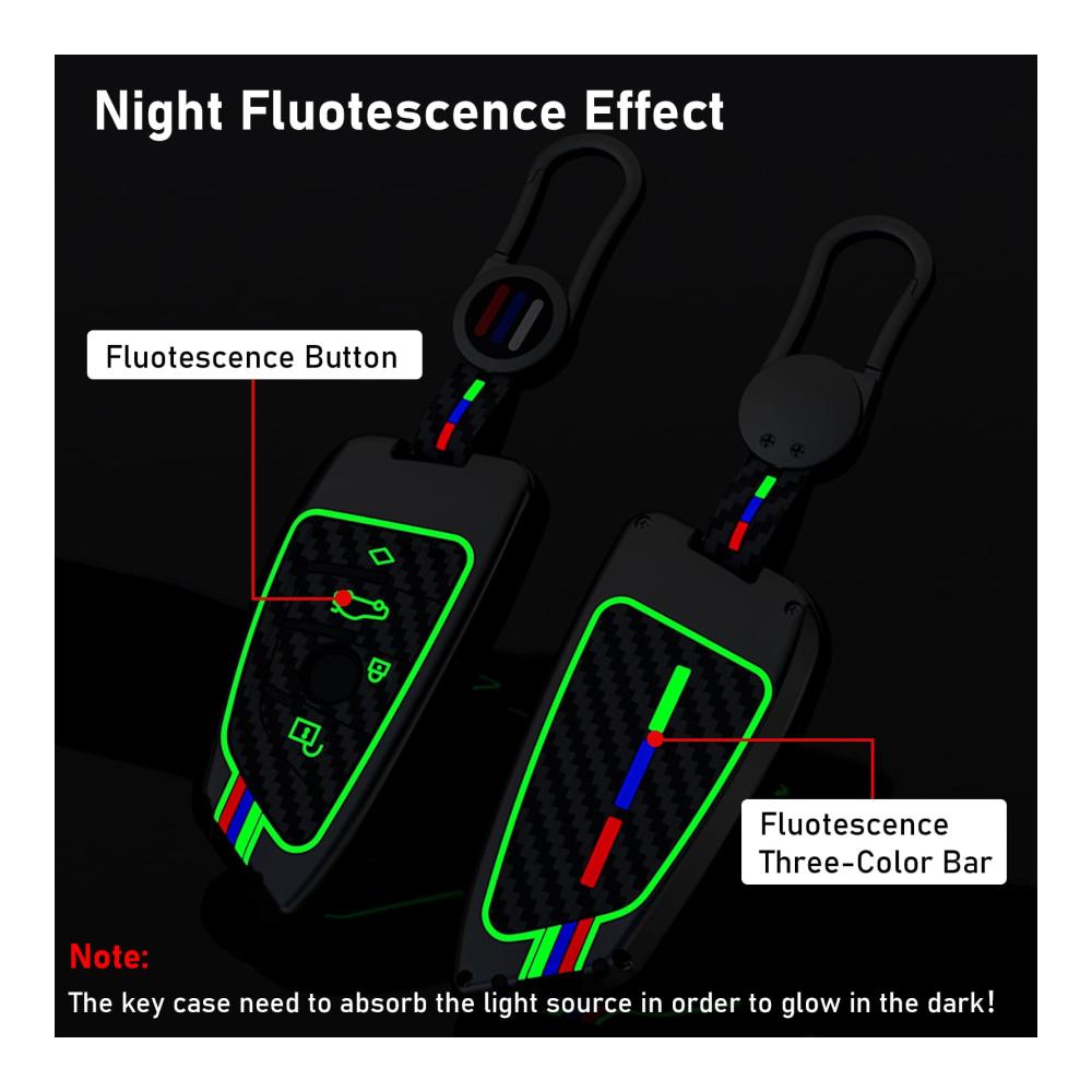【Hochwertiges Material】Unsere Autoschlüssel Hülle sind aus hochwertigem Zink-Legierung Material und Silikon-Material, mit Low-Key-Luxus-Kohlenstoff-Faser-Muster, stilvoll und langlebig, die Ihren Schlüsselbox Cover erfrischen und geben Ihnen eine andere Luxus-Gefühl.Und die Silikonabdeckung absorbiert starkes Licht und hat einen leuchtenden Effekt in der Nacht, kann die Schlüsseltastenposition leicht sehen.