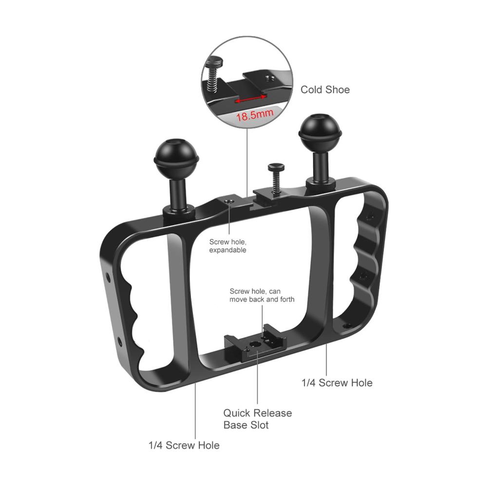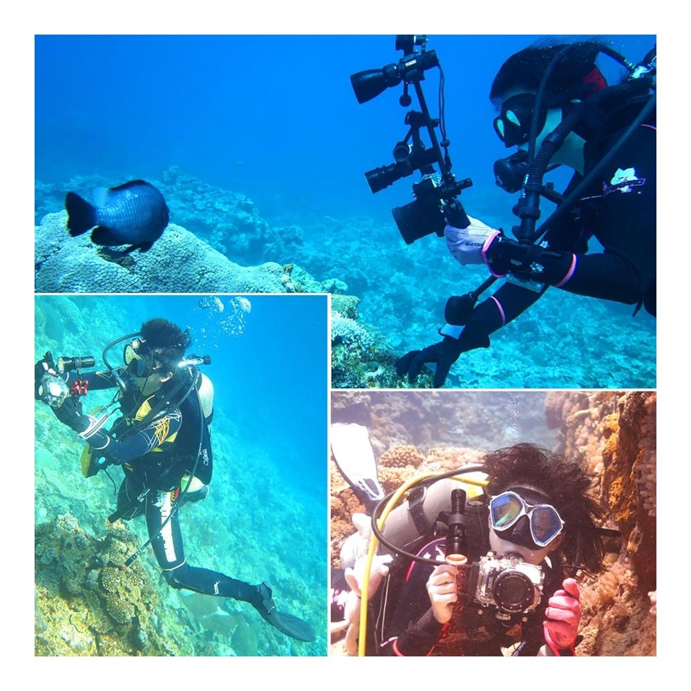 【Spezifikationen】 Die Unterwasserwanne verfügt über 1/4-Zoll-Schrauben, was bei den meisten Unterwassergehäusen Standard ist. Doppelte Feststellschrauben sorgen für doppelte Stabilität und doppelten Schutz.