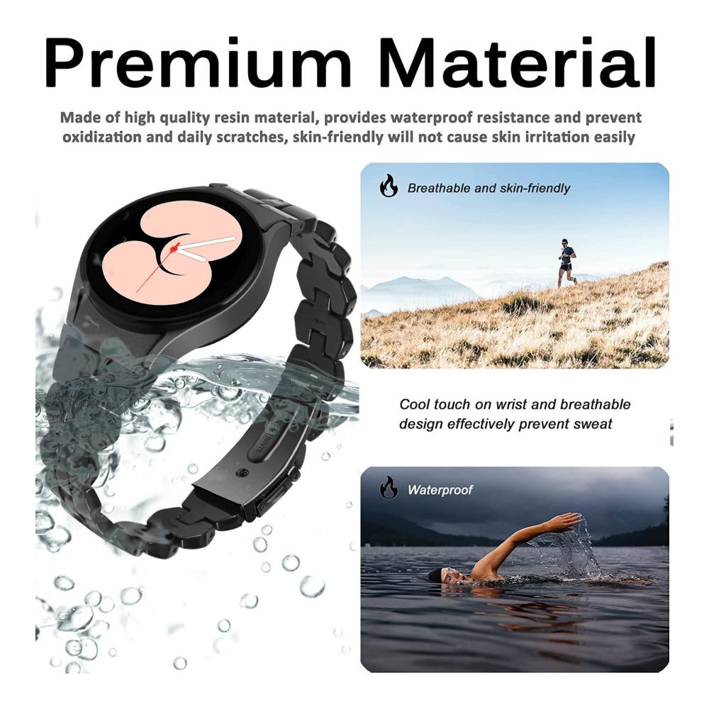 [Hochwertiges Material] Das samsung galaxy watch 5 band besteht aus hochwertigem Harzmaterial, kombiniert mit einer soliden Edelstahlschnalle, mit glatter und bequemer Oberfläche, geringem Gewicht, wasserdicht, schweißresistent und nicht leicht zu rosten und zu verblassen.