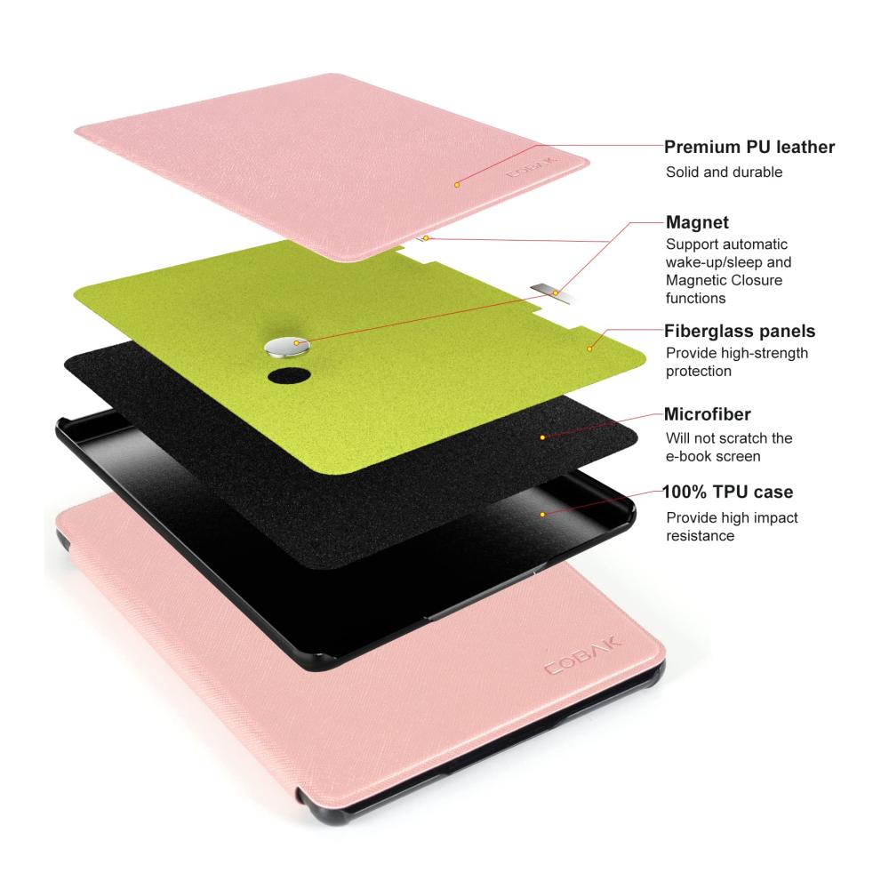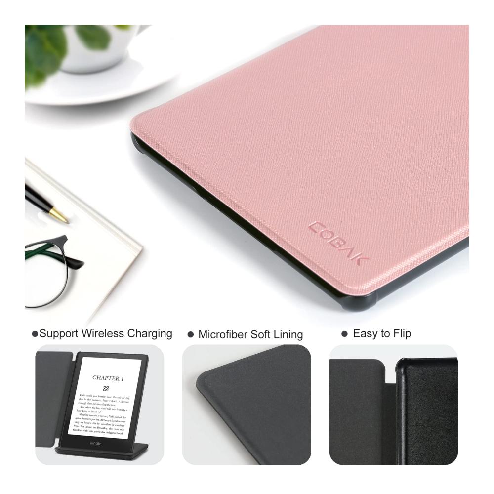 Schützen Sie Ihr Tablet stilvoll mit der CoBak Hülle. Das völlig neue Smart-Cover bietet eine Auto-Sleep-Wake-Funktion und ist speziell für den Kindle Paperwhite Signature Edition und die 11. Gen 2021 entwickelt. Mit einem formschönen Design in Roségold und einer leichten Konstruktion aus Kunstleder ist diese Hülle der ideale Begleiter für unterwegs.