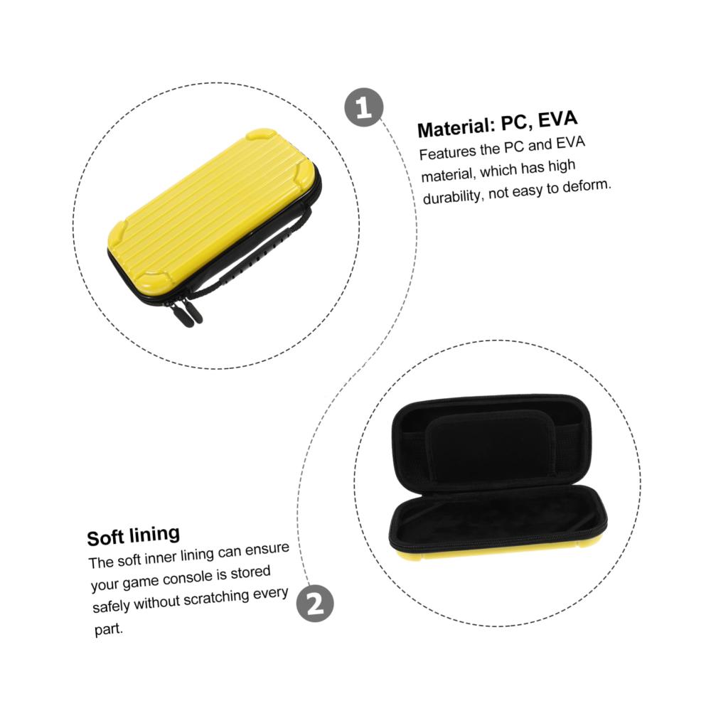 Paket beinhaltet 1 x SpielekonsolentascheEigenschaften -Größe: 22,00 x 10,00 x 4,50 cm/8,65 x 3,93 x 1 Spielekonsolentasche.– Farbe: Gelb, Zubehör für Spielekonsolen.– Material: PC, Eva. Tragetasche für Spielekonsolen.– zeichnet sich durch stabile Eigenschaften, hohe Leistung und große Zuverlässigkeit sowie eine einfache und benutzerfreundliche Aufbewahrungstasche für Spielekonsolen aus.– es wird mit professioneller Technologie hergestellt, um die Haltbarkeit des Produkts zu gewährleisten und eine lange Lebensdauer der Aufbewahrungsbox für Spielekonsolen zu gewährleisten.– kompakte Größe, leicht, Sie können es überallhin mitnehmen, bequem als Gaming-Ständer.– kann Ihre Spielekonsole vor Kratzern, Stößen, Stößen usw. schützen.– integrierter Spielkartensteckplatz, bietet Platz für Spielkarten, das Fachdesign bietet Platz für kleine Gegenstände wie Mobiltelefone, Kreditkarten usw. Tragetasche für Spielkonsolen.Wareninformationen Spielekonsolentasche Die exquisite Handwerkskunst kann Ihnen Dienste leisten, ohne leicht zu brechen. Hartschalenkoffer Die tragbare Spielekonsolentasche ist bequem und praktisch, mit ausgezeichneter Textur und ohne leicht beschädigt zu werden. Spielekonsolen-Tragetasche Dies ist eine Sehr praktische tragbare Spielekonsolentasche