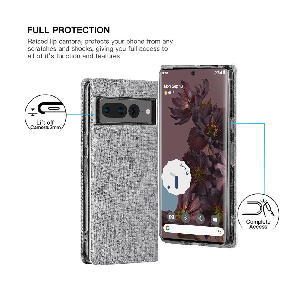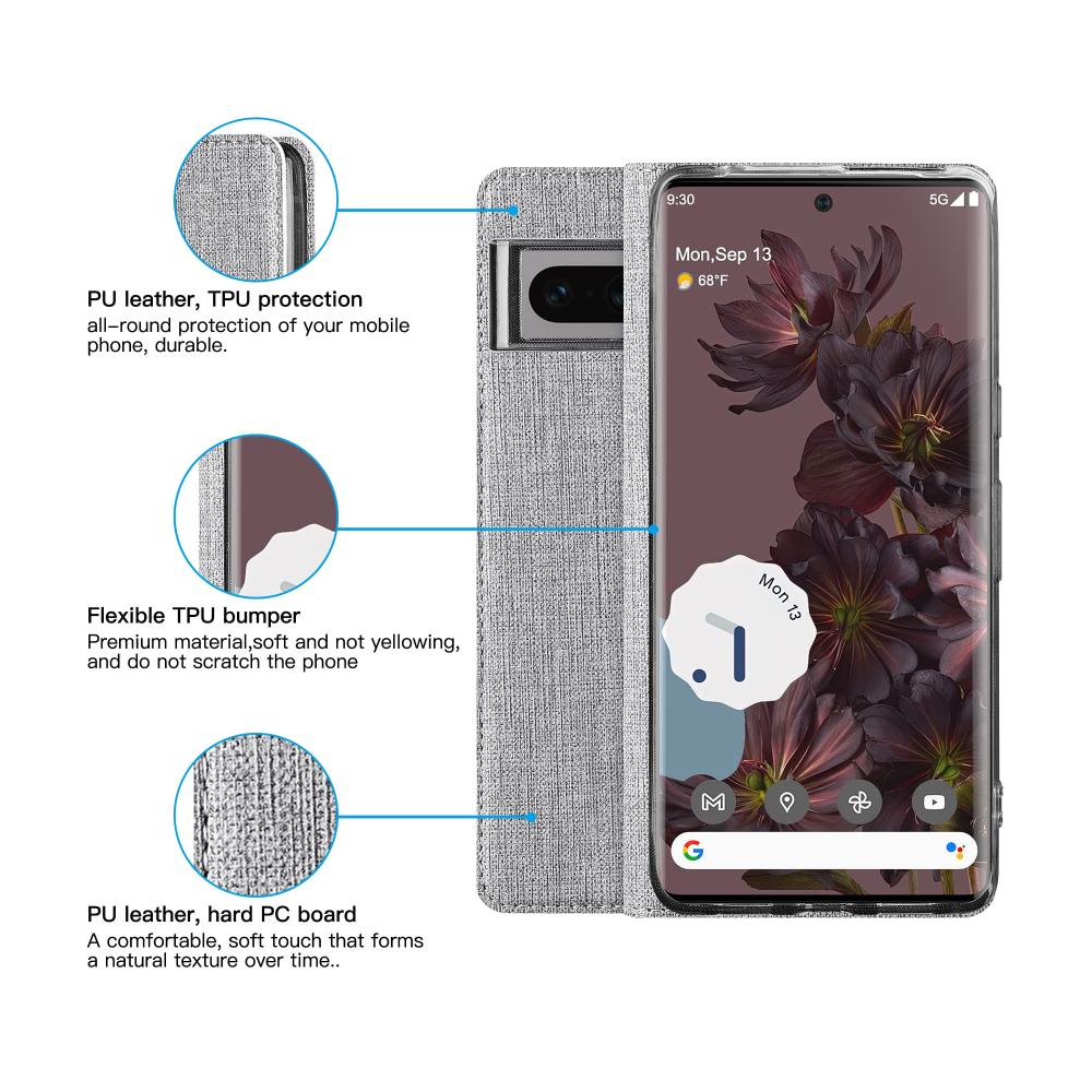 Premium-Qualität – speziell kompatibel mit Google Pixel 7 Pro 2022. Hergestellt aus hochwertigem PU-Leder Material außen, ultradünne und ultradünne Hülle, kleine und sehr weiche klare TPU-Hülle, eine gute Anti-Kratz-Schutzfunktion verhindert, dass Ihre Telefonschale vollständig zerkratzt.