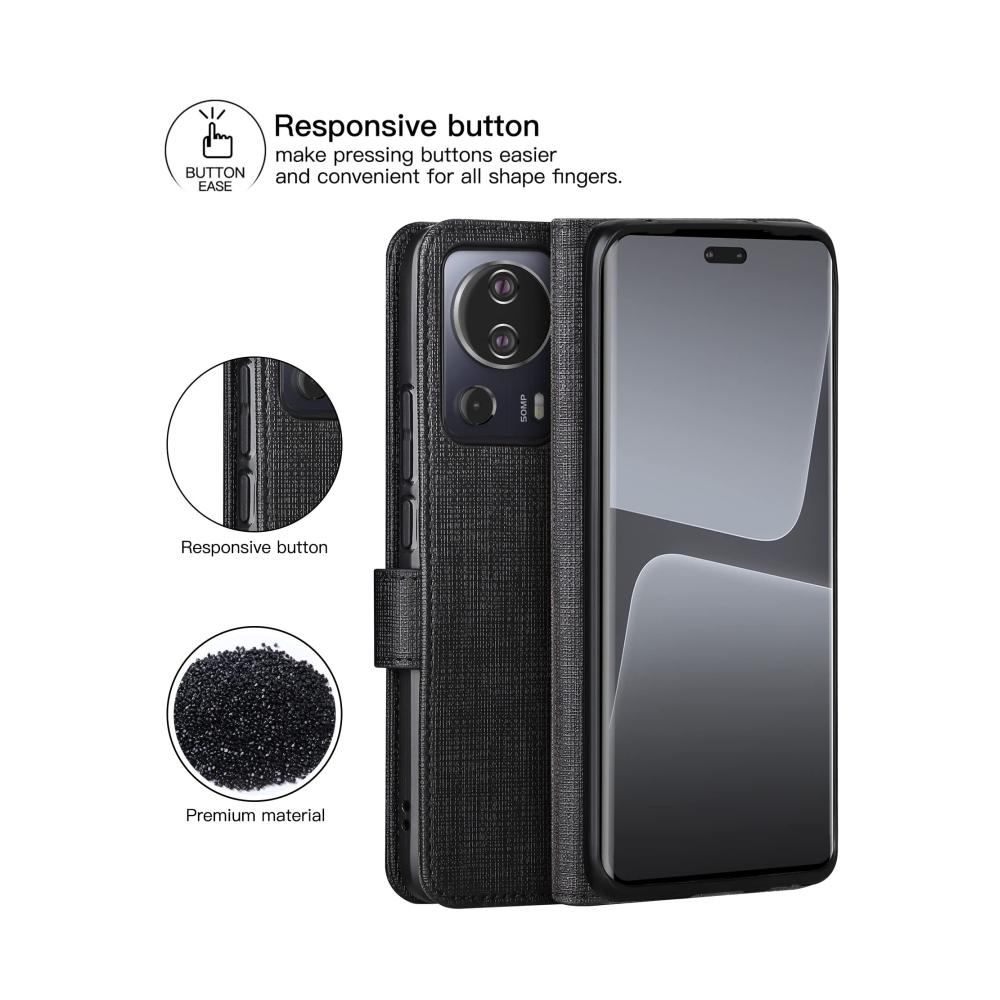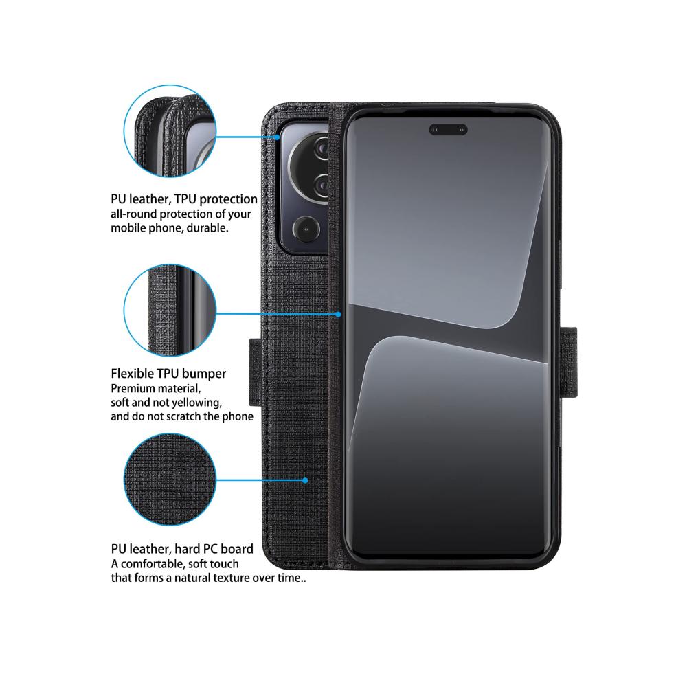 Schützen Sie Ihr Xiaomi Mi 13 Lite 5G 2023 stilvoll mit dieser Klapphülle von Foluu. Hergestellt aus transparentem TPU und Canvas für hervorragenden Schutz. Die Hülle verfügt über 3 Kartenfächer und 1 Geldfach und bietet einen magnetischen Verschluss für zusätzliche Sicherheit. Ein verstellbarer Ständer ermöglicht Ihnen die optimale Positionierung Ihres Telefons. 100% Zufriedenheitsgarantie