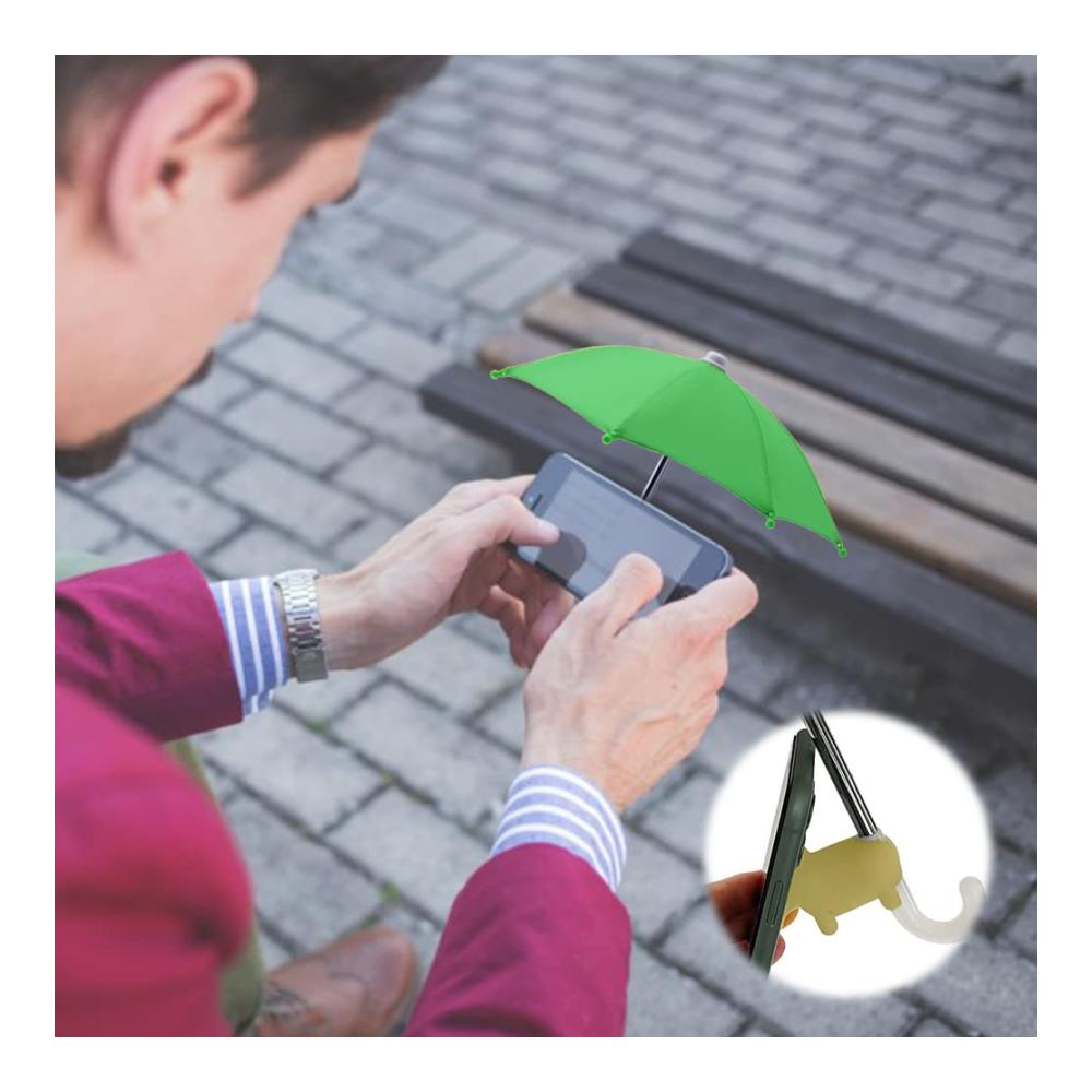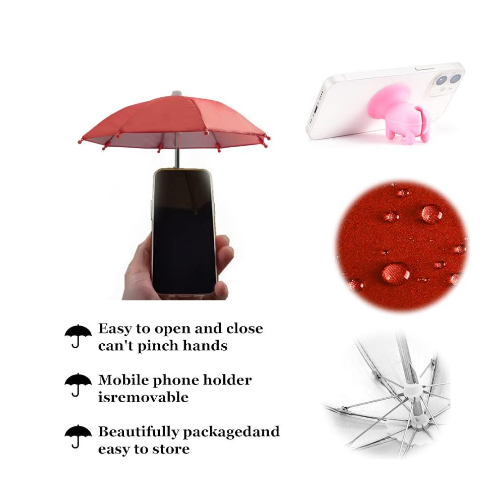 ☂【Langlebiges Material】 Der kleine Regenschirm verwendet die innere Schicht aus mattem Silberkleber, um ultraviolette Strahlen zu blockieren, und die äußere Schicht aus Lotusblatt ist wasserdicht (verdicktes Skelett, 8 Skelette sind fest und stabil). Kunststoff, robust und langlebig, mit einem rutschfesten Pad an der Unterseite, um den Telefonhalter stabil zu halten.