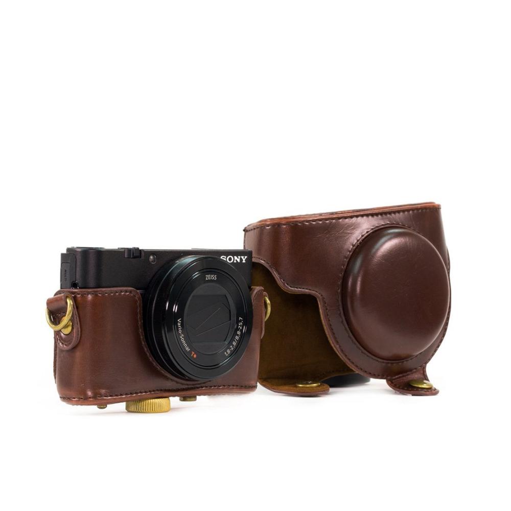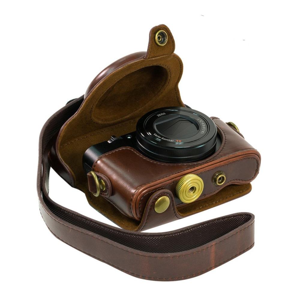 Schützen Sie Ihre Sony RX100, RX100II, RX100III M3 und DSC-RX100 III Kamera stilvoll und sicher mit dieser hochwertigen PU-Leder-Schutzhülle. Das Retro-Design mit abnehmbarer vorderer Kappe ermöglicht ein bequemes Fotografieren, ohne die Hülle entfernen zu müssen. Hergestellt aus kompaktem, leichtem und extrem haltbarem Material ist diese Tasche einfach zu tragen. Die weiche interne Schicht schützt den LCD-Bildschirm vor Kratzern und Stößen. Mit einem Standard-Gewinde kann sie auch auf einem Stativ montiert werden. Holen Sie sich diese praktische Kameratasche jetzt