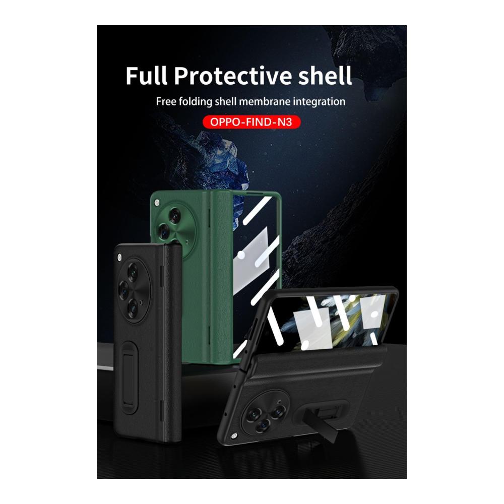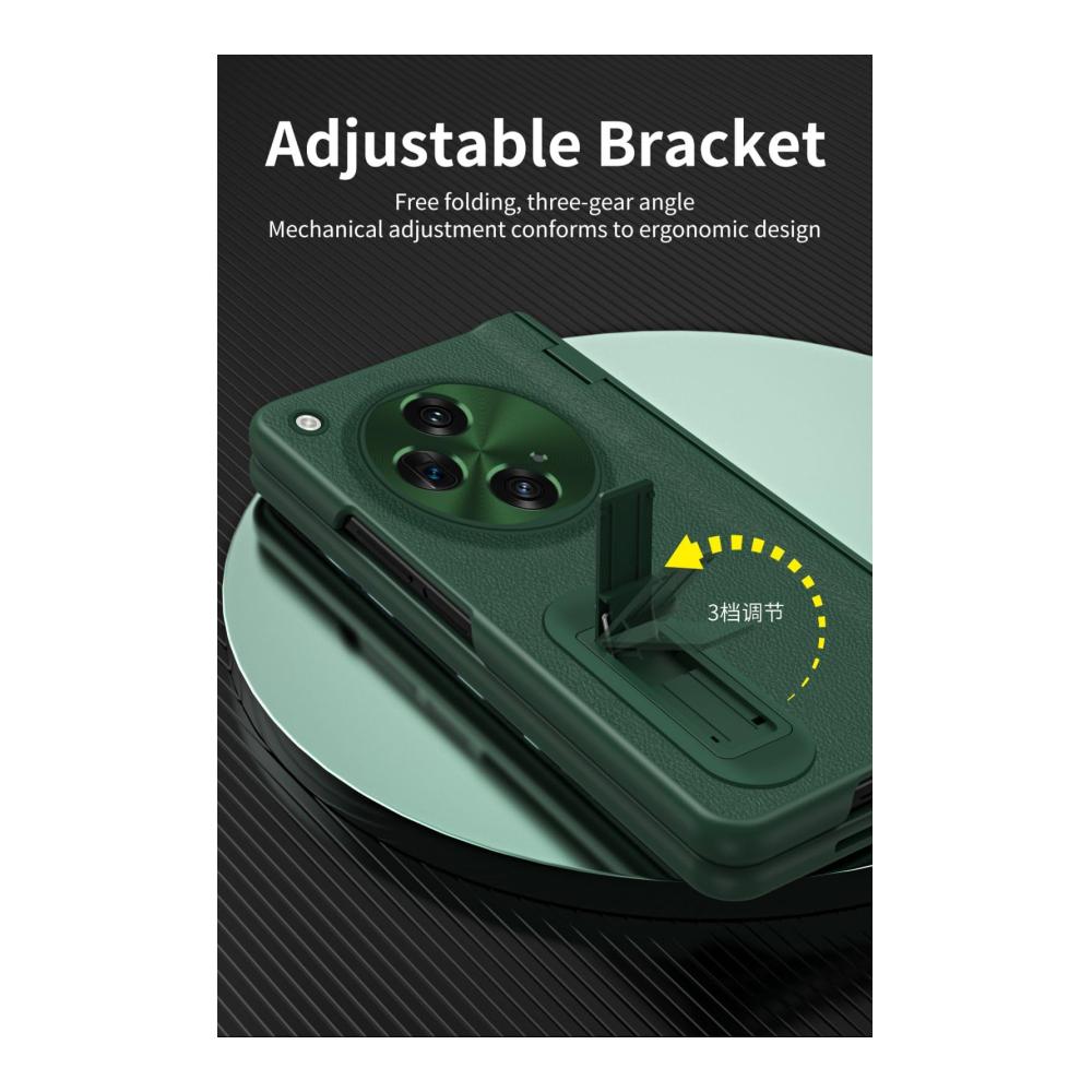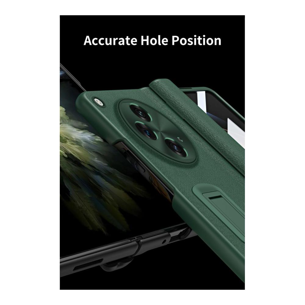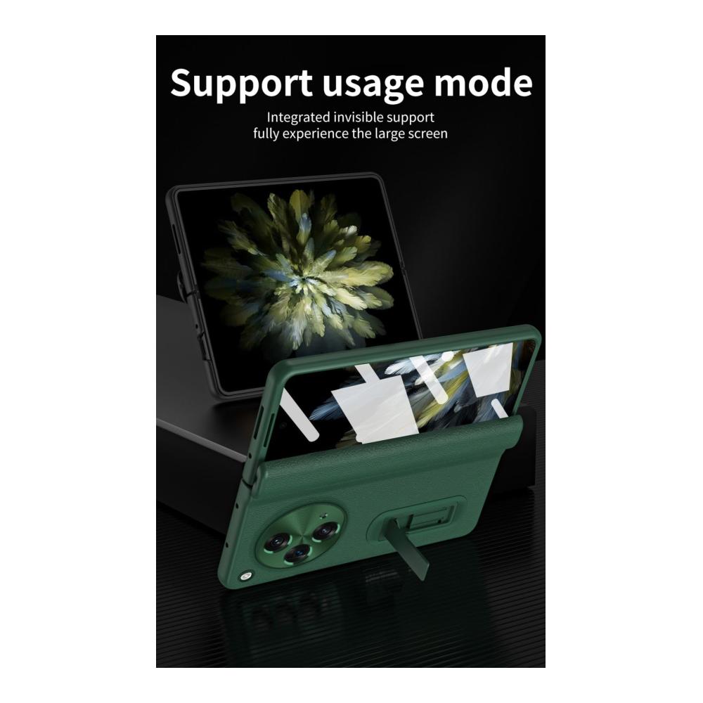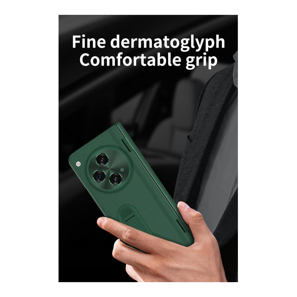 Diese hochwertige Standard-Hülle für das OnePlus Open bietet nicht nur Schutz, sondern auch Stil. Mit Texturleder und einem PC-Rahmen bietet sie eine robuste Konstruktion. Die integrierte Glasfolie unterstützt kabelloses Laden, während die Scharniere und Halterungen für zusätzliche Bequemlichkeit sorgen. Die Metall-Linsenabdeckung schützt Ihre Kamera, während der Ständer für bequemes Ansehen sorgt. Dank des Stoßfängers und der verschiedenen Farboptionen erhalten Sie einen vollständigen Schutz mit Stil. Entworfen für OnePlus Open und Oppo Find N3(6).