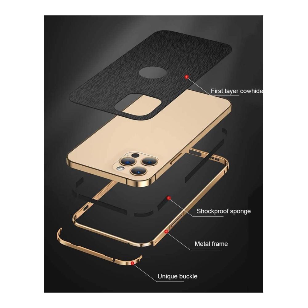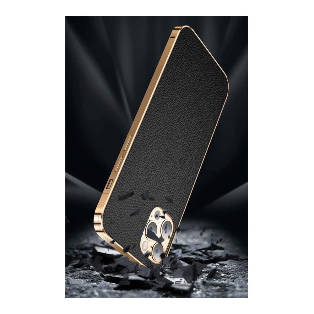 Diese robuste Schutzhülle für das Apple iPhone 12 Mini (2020) mit 5,4 Zoll Display verfügt über ein stilvolles Litschi-Muster und einen Metallrahmen in elegantem Schwarz-Gold-Design. Mit perfekten Aussparungen für einfachen Zugriff auf alle Funktionen und präzisen eingebauten Tasten, bietet sie einen festen Griff und maximalen Schutz. Die erhöhte Vorderkante schützt das Display, während der Rahmen das Kameraobjektiv vor Kratzern und Stürzen bewahrt. Die Stoßdämpfung in allen Ecken gewährleistet Fallsicherheit, ohne das kabellose Laden zu beeinträchtigen.