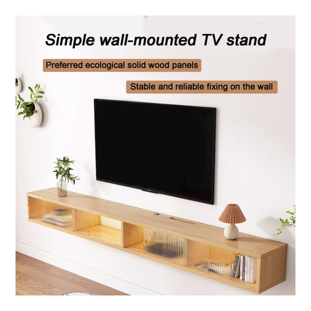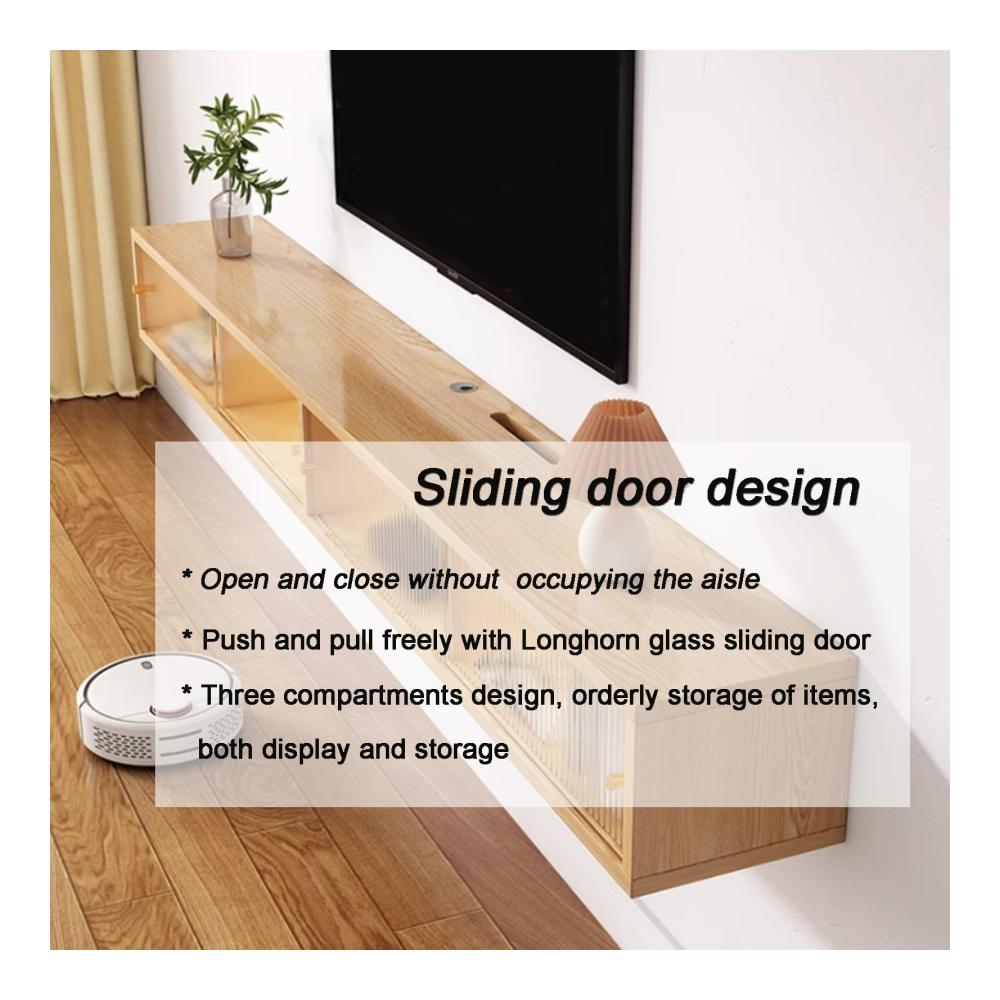 Erleben Sie mit unserem wandmontierten TV-Schrank mit schwebenden Standfüßen aus Holz ein neues Niveau der Eleganz und Funktionalität. Unser modernes Medienkonsolen-Unterhaltungszentrum bietet nicht nur stilvolles Design, sondern auch praktischen Stauraum für Ihr Wohnzimmer oder Schlafzimmer.
