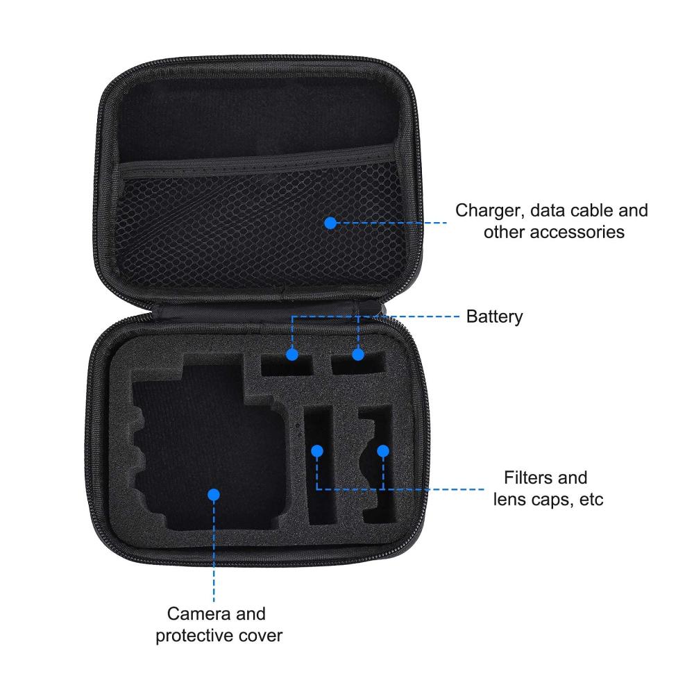 • Weitgehend kompatibel: Perfekt geformte Fächer, die mit der Taschen für Action-Kameras kompatibel sind: GoPro Hero 8 7 6 5 4 3 3 2; AKASOEK7000/ DBPOWER/ Lightdow/ APEMAN/ ODRVM/ SOOCOO Kameras usw.