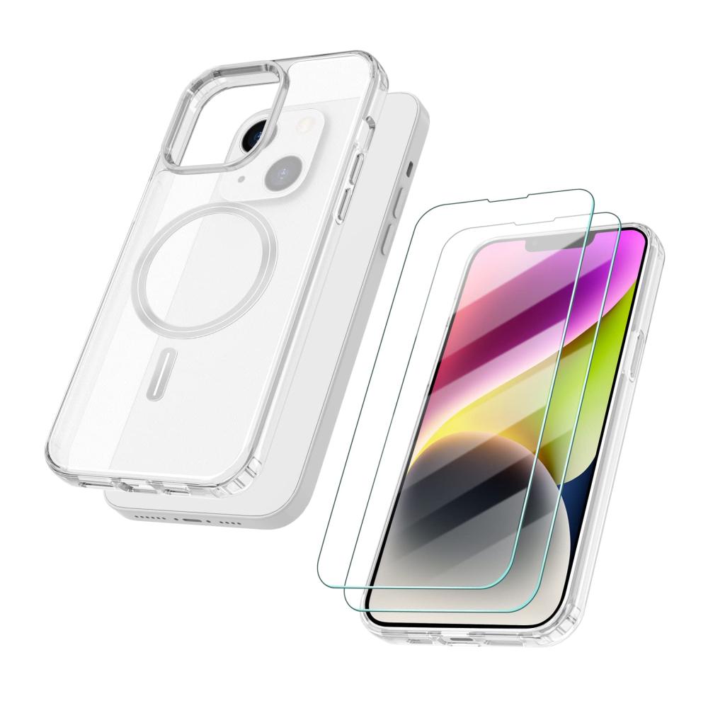 [2er-Pack Displayschutzfolie aus gehärtetem Glas] Skycase magnetische, durchsichtige Hülle für das iPhone 14 mit 2er-Pack Displayschutzfolie aus gehärtetem Glas, bietet einen 360°-Rundumschutz für Ihr Telefon , nicht fettend, das UV-Strahlen effektiv blockieren und filtern und die Sichtbarkeit des Bildschirms verbessern kann.