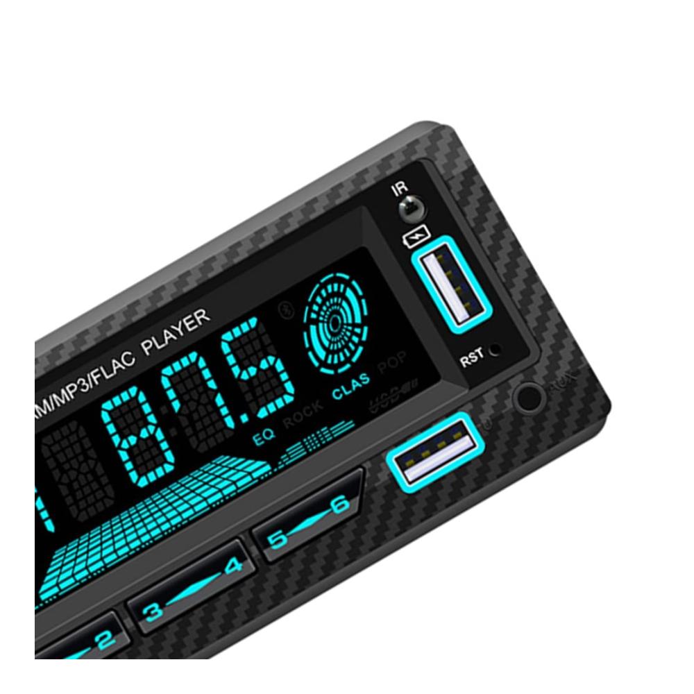 Erleben Sie das 1Din Auto Wireless Bluetooth 12V MP3 Player Card Inserted U Disk Multimedia Radio von jumbans, ein vielseitiger Digital Media-Receiver für Ihr Fahrzeug. Mit Unterstützung für -Band-Radio und 18 voreingestellte Sender können Sie Ihre Lieblingsstationen problemlos finden. Genießen Sie MP3-, WMA- und WAV-Formate über USB/TF-Kartenleser mit Unterstützung für Ordnerwiedergabe. Die Fernbedienung ermöglicht eine bequeme Steuerung, während der rotierende Lautstärkeregler die Bedienung erleichtert. Mit elektronischem Bass, Höhen- und Balance-Regler können Sie den Klang anpassen. Das Produkt bietet 4 x 60 W Ausgangsleistung und ein siebenfarbiges Lichtdisplay für eine ansprechende Atmosphäre im Auto. Ideal für unterwegs!