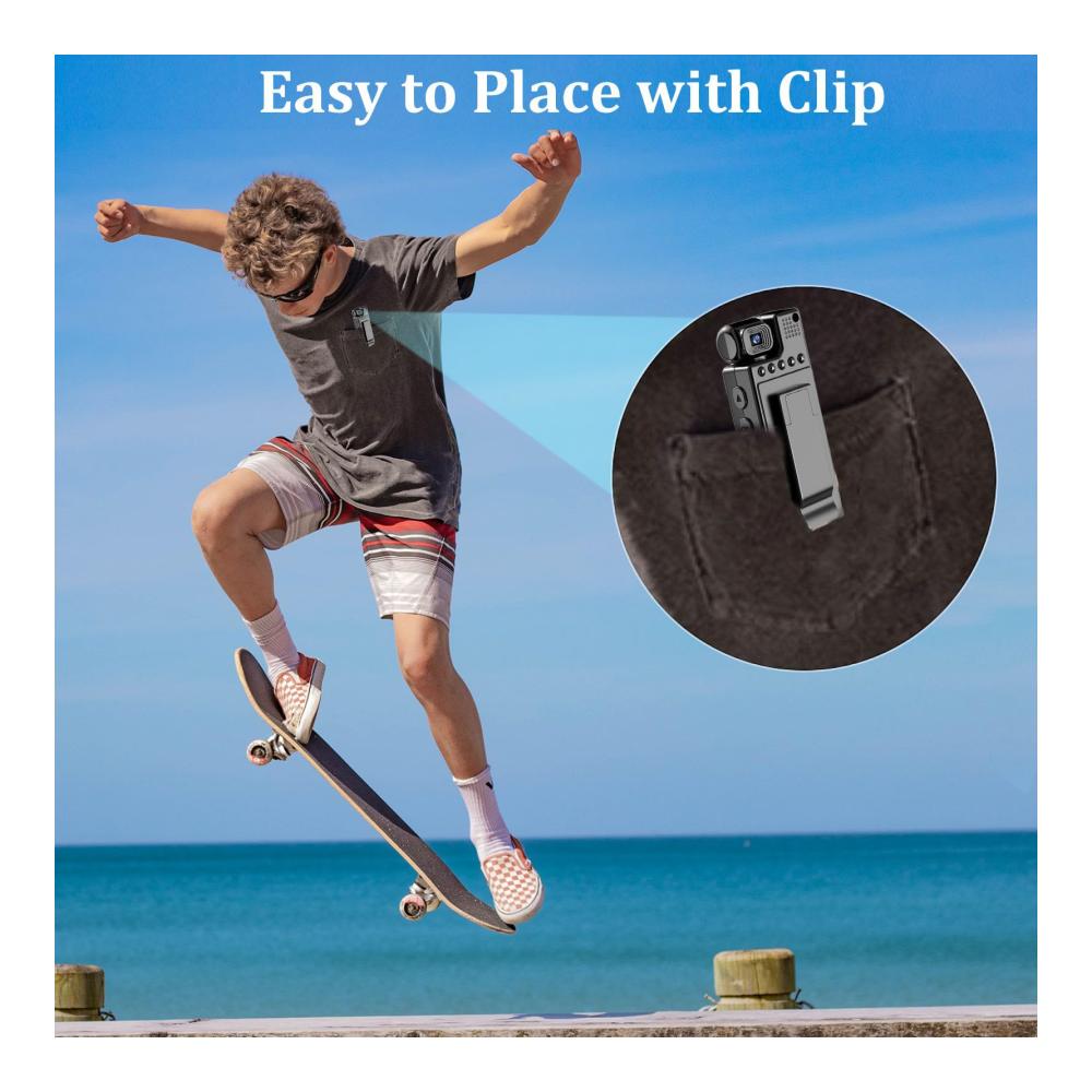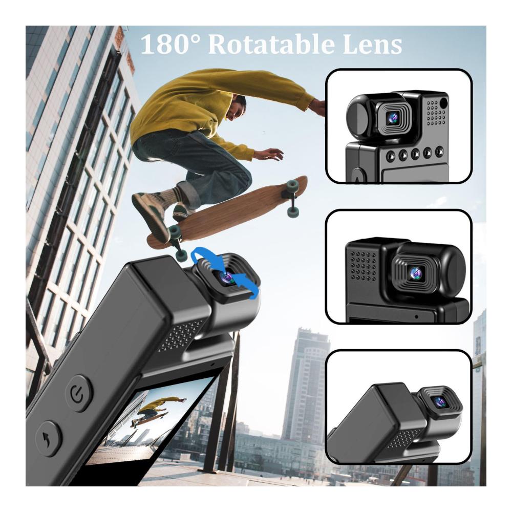 Die 4K Mini Körperkamera mit 180° Objektiv ist eine innovative Lösung für hochwertige Videoaufnahmen. Ausgestattet mit WLAN-Technologie ermöglicht sie eine mühelose Verbindung zu Ihren Geräten. Die Nachtsichtfunktion sorgt für klare Aufnahmen bei allen Lichtverhältnissen. Dank Bewegungserkennung beginnt die Aufnahme automatisch, wenn Aktivität erkannt wird. Mit bis zu 128 GB Speicherkapazität und einem 1200-mAh-Akku bietet sie ausreichend Platz und lange Betriebszeiten. Das Clip-on-Design ermöglicht eine bequeme Befestigung an Kleidung oder Taschen, ideal für den Einsatz unterwegs.
