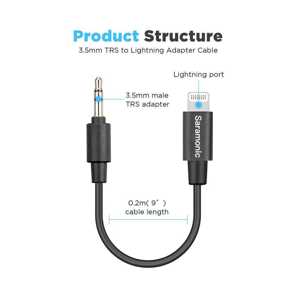Saramonic Mikrofonadapter 3,5 mm TRRS auf Light-ning-Adapterkabel (6cm)