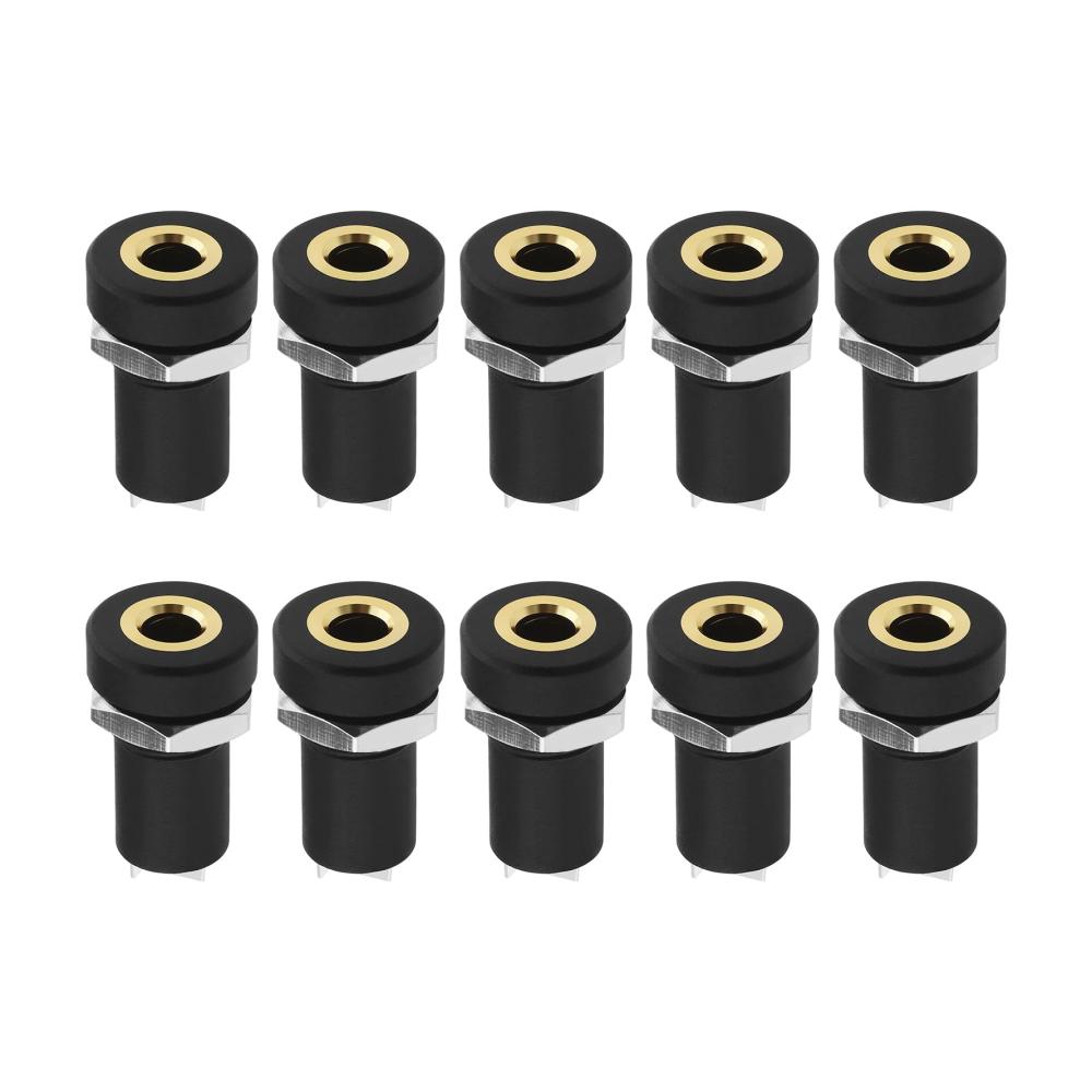 Das Set besteht aus 10 hochwertigen 3,5-mm-Mono-Buchsen für die Klinkenmontage mit Muttern. Diese sind ideal für Anwendungen wie CD-Player, Computer, Laptops und digitale DVDs. Die Buchsen sind aus robustem Kunststoff und Metall gefertigt und in Schwarz gehalten. Sie bieten eine zuverlässige Verbindung dank ihrer Löttypen und 2-poligen Stecker. Im Lieferumfang enthalten sind 10 Stück jeder Komponente für Ihre Projekte.