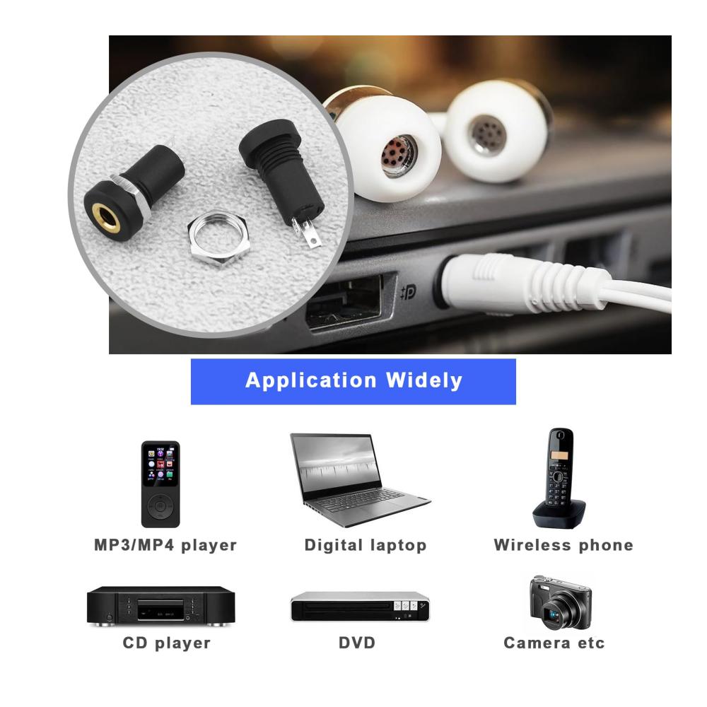 [Umfangreiche Anwendung]: Die 3,5 mm Mono-Buchse für Panelmontage ist geeignet für MP3/MP4-Player, Kommunikation, CD-Player, schnurlose Telefone, digitale Laptops, DVDs, Digitalkameras usw.