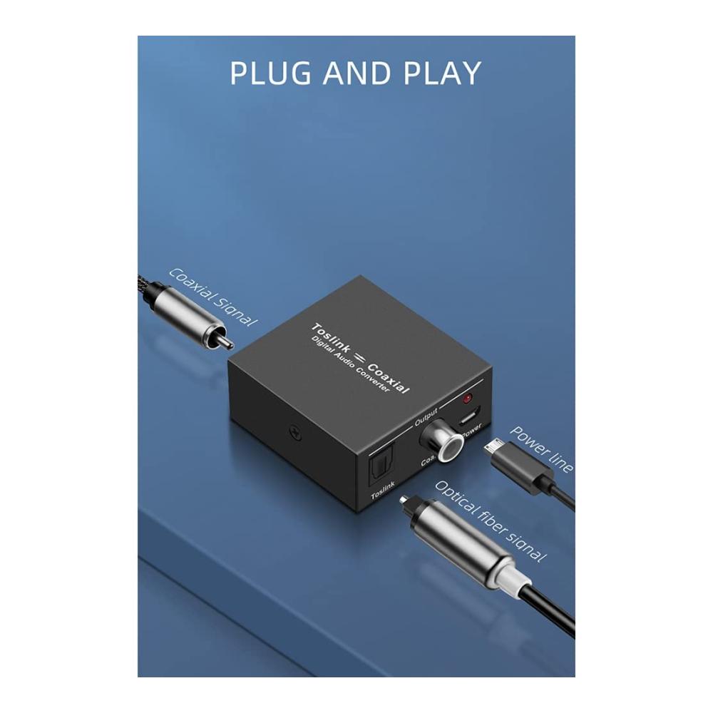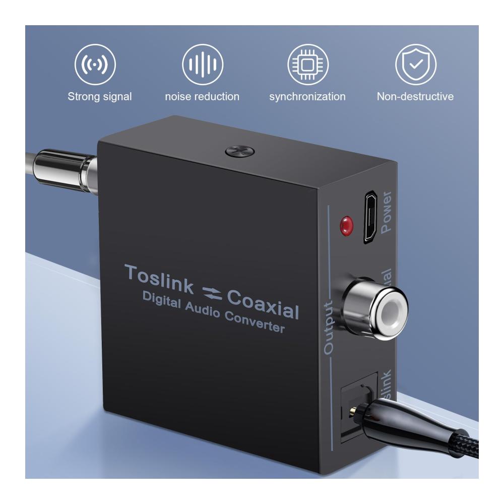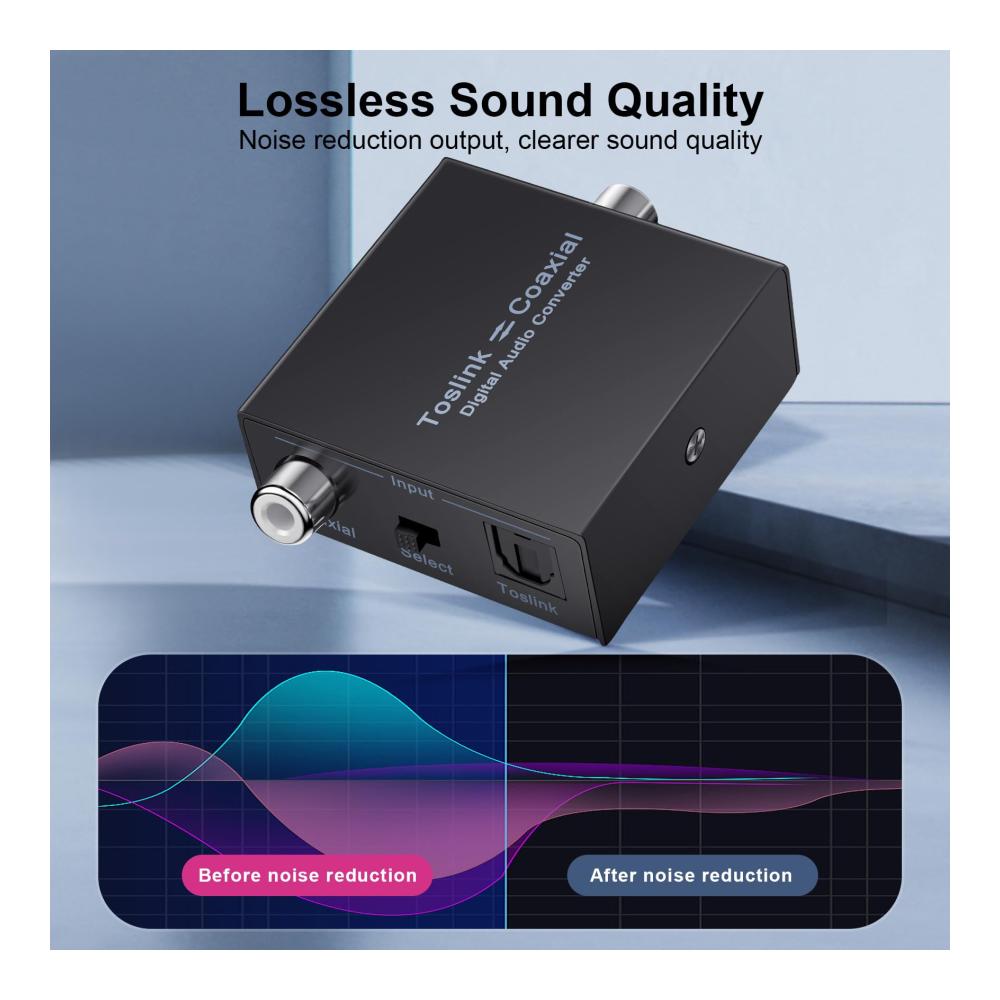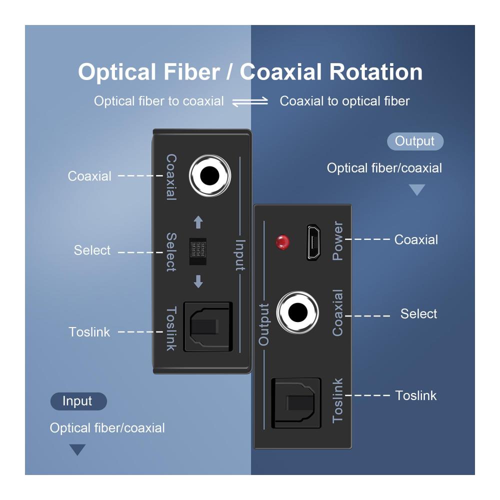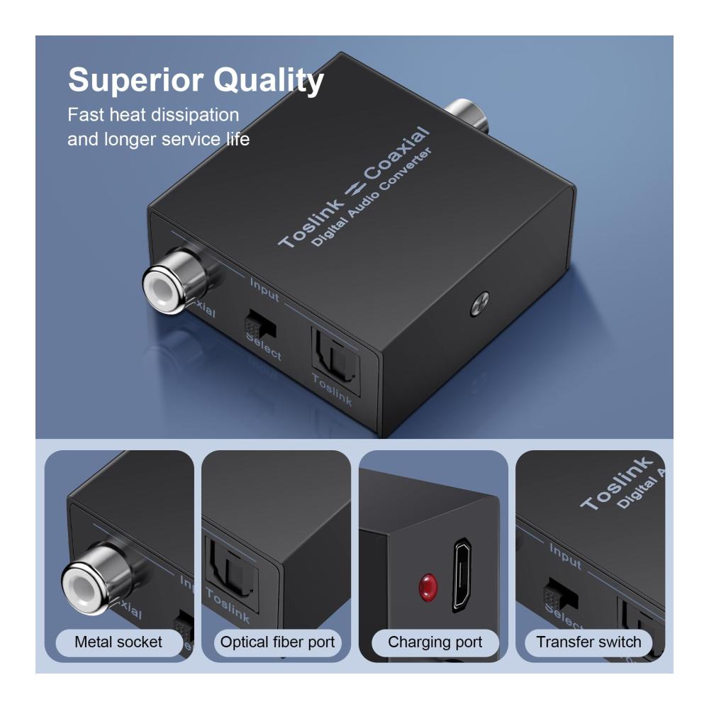 Optisch-zu-Koaxial-Audio: Dieser bidirektionale digitale Audiokonverter teilt das optische Signal Ihrer optischen (Blu-ray-Player und Satellitenempfänger usw.) in Ihren Lautsprecher oder Verstärker, sowohl optisches als auch koaxiales Ausgangsaudio gleichzeitig
