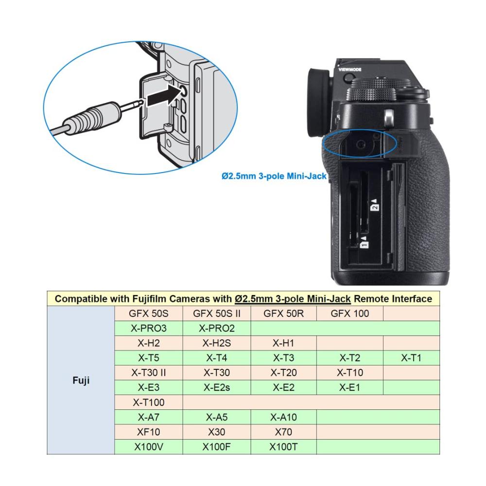 Das JJC Fernauslösekabel ist speziell für Fujifilm Kameras mit 2,5 mm Fernauslöseklemme konzipiert. Es bietet maximale Kontrolle und verhindert unerwünschte Bewegungen der Kamera, besonders bei langen Belichtungszeiten. Mit einem zweistufigen Auslöseknopf können Sie mühelos fokussieren und Aufnahmen machen. Dieser Fernauslöser ersetzt das Fujifilm RR-100 Release-Kabel und ist kompatibel mit einer Vielzahl von Fujifilm Kameras. Ideal für Fotografen, die Präzision und Stabilität benötigen.