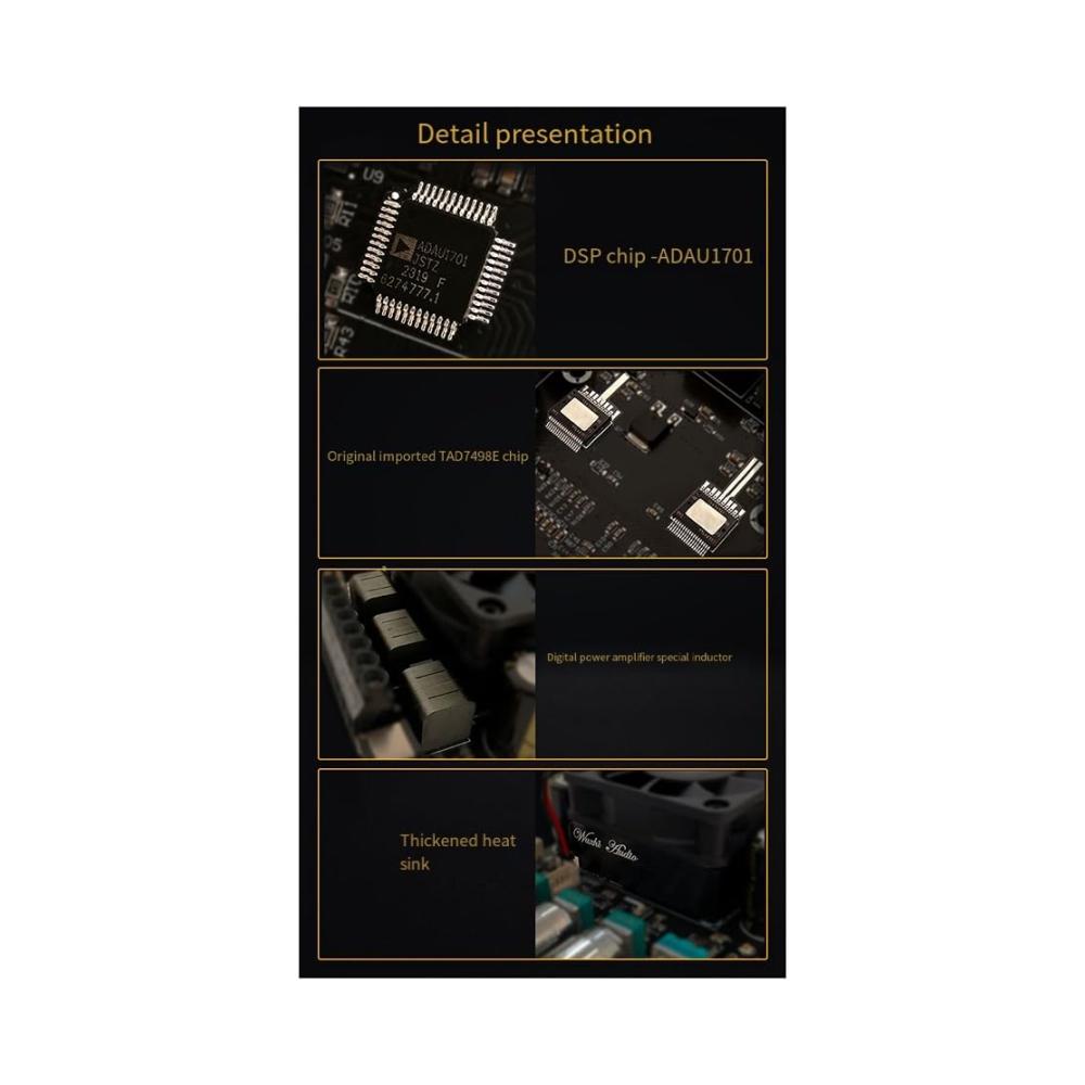 Das Produkt der DAS-Serie A1 ist mit einem Hochleistungs-DSP Adau1701-Chip ausgestattet. Es handelt sich um ein komplettes Single-Chip-Audiosystem mit 28/56-Bit-ADC, DAC-Auflösung und Berechnungsgenauigkeit. Es hat ein extrem hohes Signal-Rausch-Verhältnis. Der Adc ist 100 dB und der DAC ist 104 dB.
