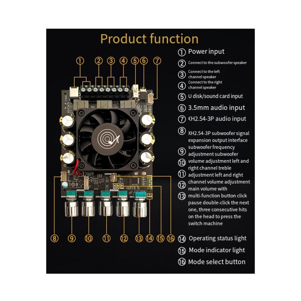 Dank Bluetooth-Verbindung, AUX- und U-Disk-Eingängen sowie umfassendem Schutzmechanismus ist dieses Verstärkermodul äußerst vielseitig und zuverlässig. Genießen Sie Musik in erstklassiger Qualität mit diesem langlebigen und leistungsstarken Hifi-Verstärkermodul.