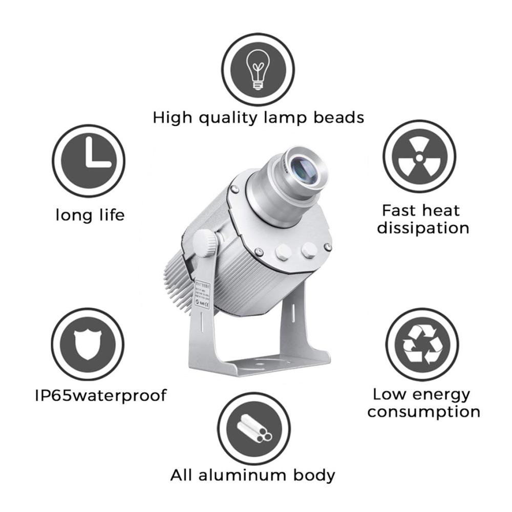 [SUPER BRIGHT]: Ausgerüstet mit 35W LED, dieses Logo Projektor bietet einen hellen Lichtstrahl Ihrer Marke Indoor / Outdoor-Anwendungen zu fördern und ist ideal für kleine Anzeigen, Firmenveranstaltungen, Einzelhandelsgeschäfte und Hochzeiten.