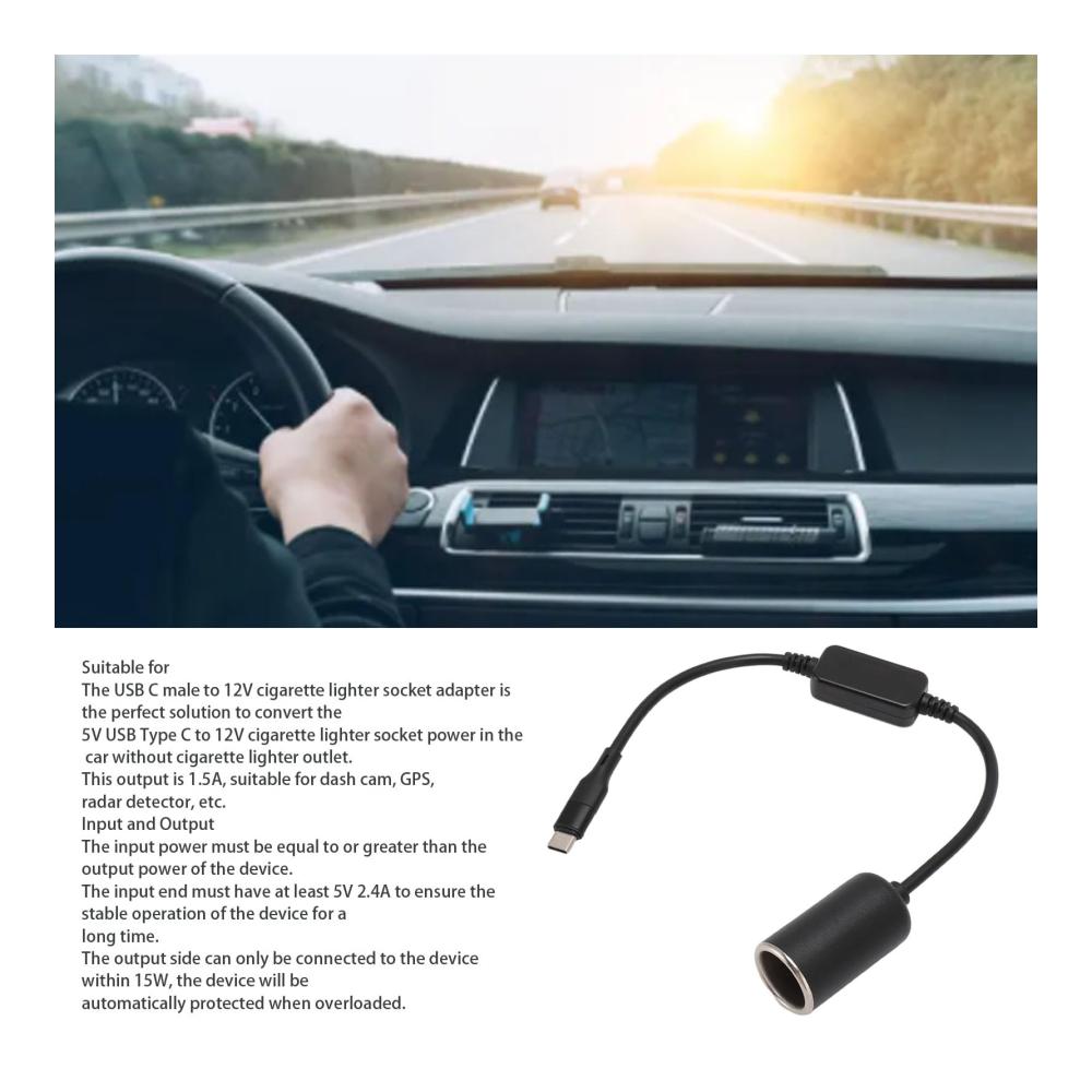 Geeignet für: Der USB C Stecker auf 12V Zigaretten anzünder Steckdose Adapter ist die perfekte Lösung, um die 5V USB Typ C auf 12V Zigaretten anzünder Buchse im Auto ohne Zigaretten anzünder Steckdose umzuwandeln. Dieser Ausgang ist 1,5 A, geeignet für Dash Cam, GPS, Radar detektor usw.