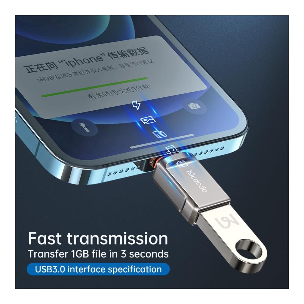 Unser Lightning auf USB Adapter für iPhone bietet eine bequeme Lösung für die Verbindung von USB-Geräten mit Ihrem iPhone oder iPad. Mit einer Übertragungsgeschwindigkeit von bis zu 5 Gbit/s und einem robusten Aluminiumgehäuse ist dieser Adapter ideal für verschiedene Anwendungen. Die OTG-Funktion ermöglicht die Verwendung mit einer Vielzahl von USB-Peripheriegeräten. Kompatibel mit einer breiten Palette von iOS-Geräten ab Version 9.2. Schließen Sie Ihren USB-Speicher an, um die Kapazität Ihres Smartphones zu erweitern und Dateien sicher zu speichern. Erleben Sie eine verbesserte Konnektivität und Flexibilität mit unserem hochwertigen Adapter von mcdodo