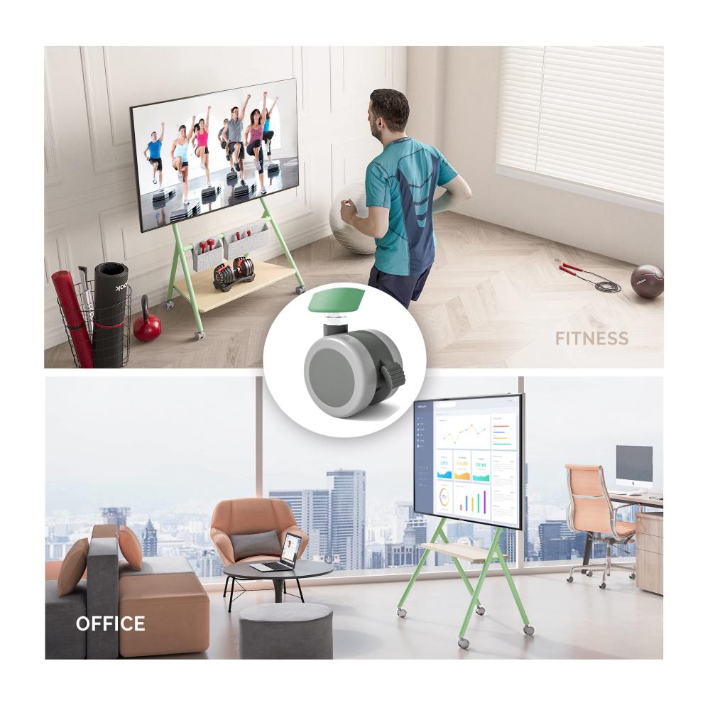 【Flexible Mobilität & Vielseitiger Einsatz】Ausgestattet mit 4 geräuschlosen und feststellbaren Universalrollen ist FITUEYES Fernsehständer immer dort, wo Sie ihn brauchen. Ob Fitness im Wohnzimmer, Kochen lernen in der Küche, sich im Konferenzraum treffen oder Spielen im Schlafzimmer, er kann Ihre Bedürfnisse perfekt erfüllen.