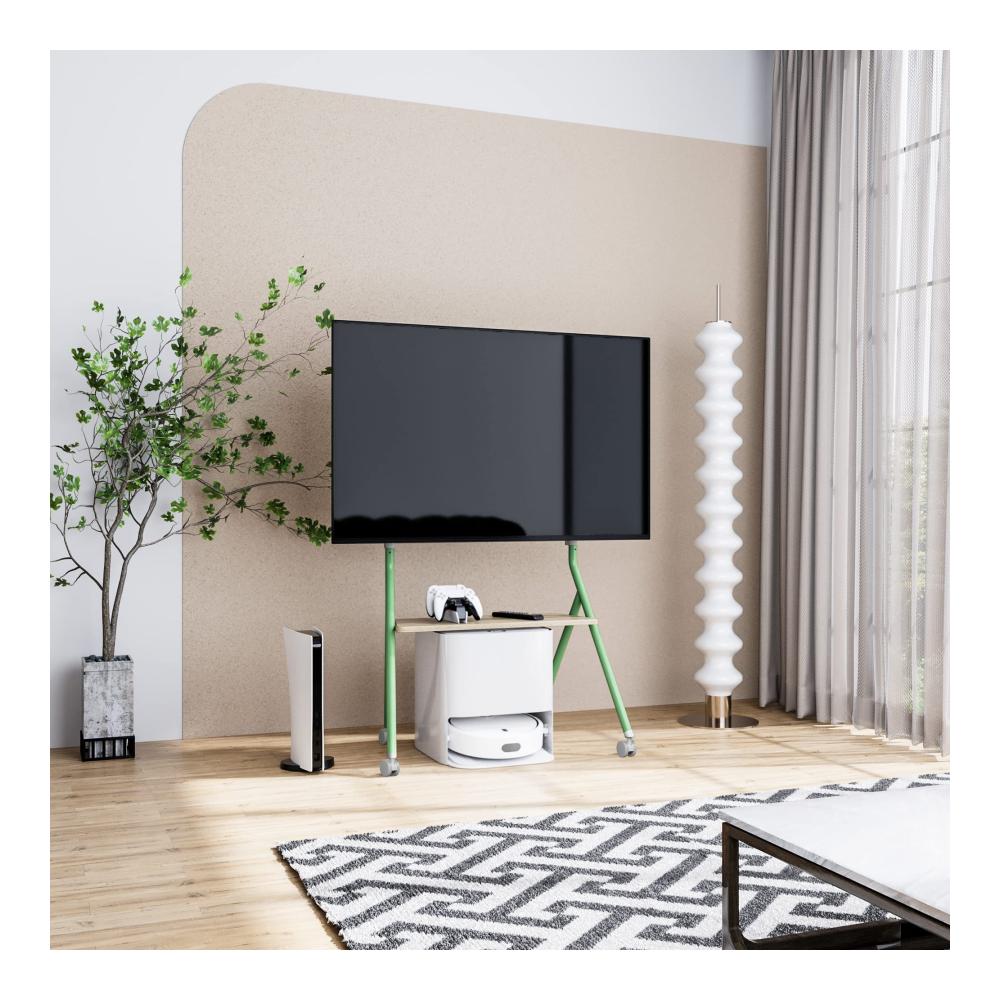 Der Design Mobiler TV Ständer Rollbar ist mehr als nur ein praktisches Möbelstück – er ist ein stilvolles Statement für Ihr Zuhause. Mit seiner einstellbaren Höhe von 55 bis 78 Zoll und einer Tragkraft von bis zu 45 kg bietet er die perfekte Unterstützung für Ihre Fernsehgeräte. Die integrierte Holzablage und das moderne Design in Mintgrün fügen sich nahtlos in jede Inneneinrichtung ein. Dank der robusten Standfüße ist dieser TV Ständer nicht nur flexibel, sondern auch stabil. Ein Must-Have für alle, die Funktionalität und Ästhetik schätzen!
